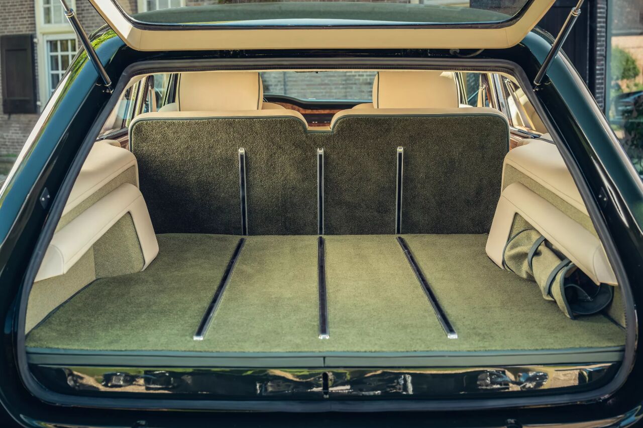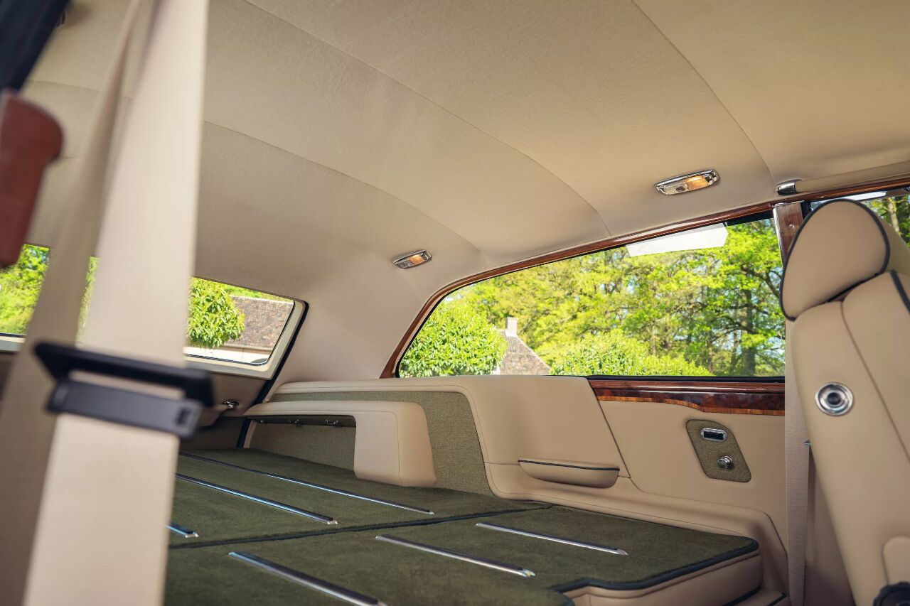 Niels van Roij Design团队在内饰改造上做了大量的功夫。车内采用了米色皮革和绿色的装饰,羊毛地毯的使用让整个车厢更加温暖舒适,同时又不失豪华感。