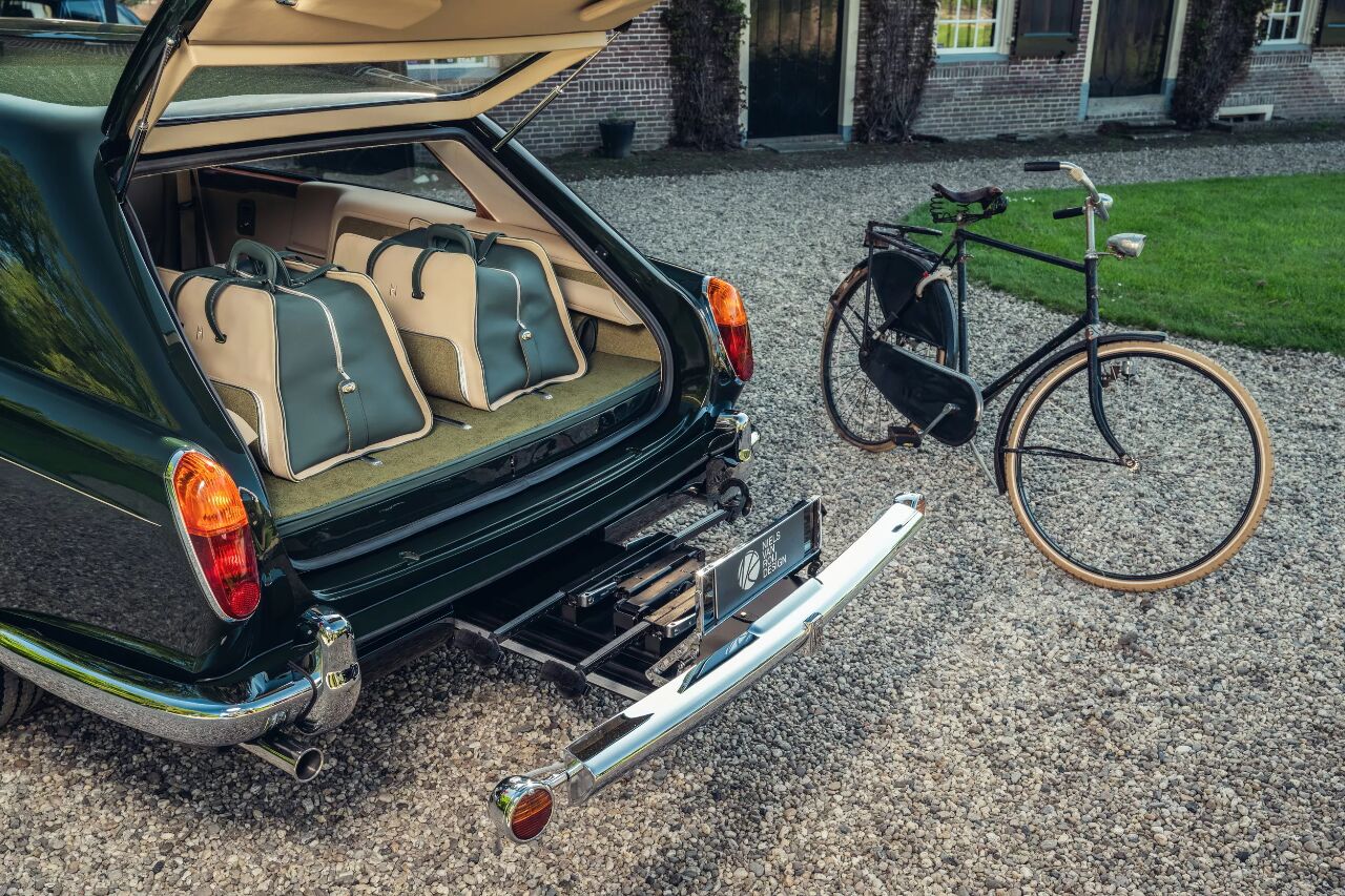 这辆车不仅延续了原有的奢华气质,还融入了现代功能性,最引人注目的莫过于它隐藏在车尾的定制电动自行车架,令人称奇的设计让它成为了世界上最优雅的运动休闲车