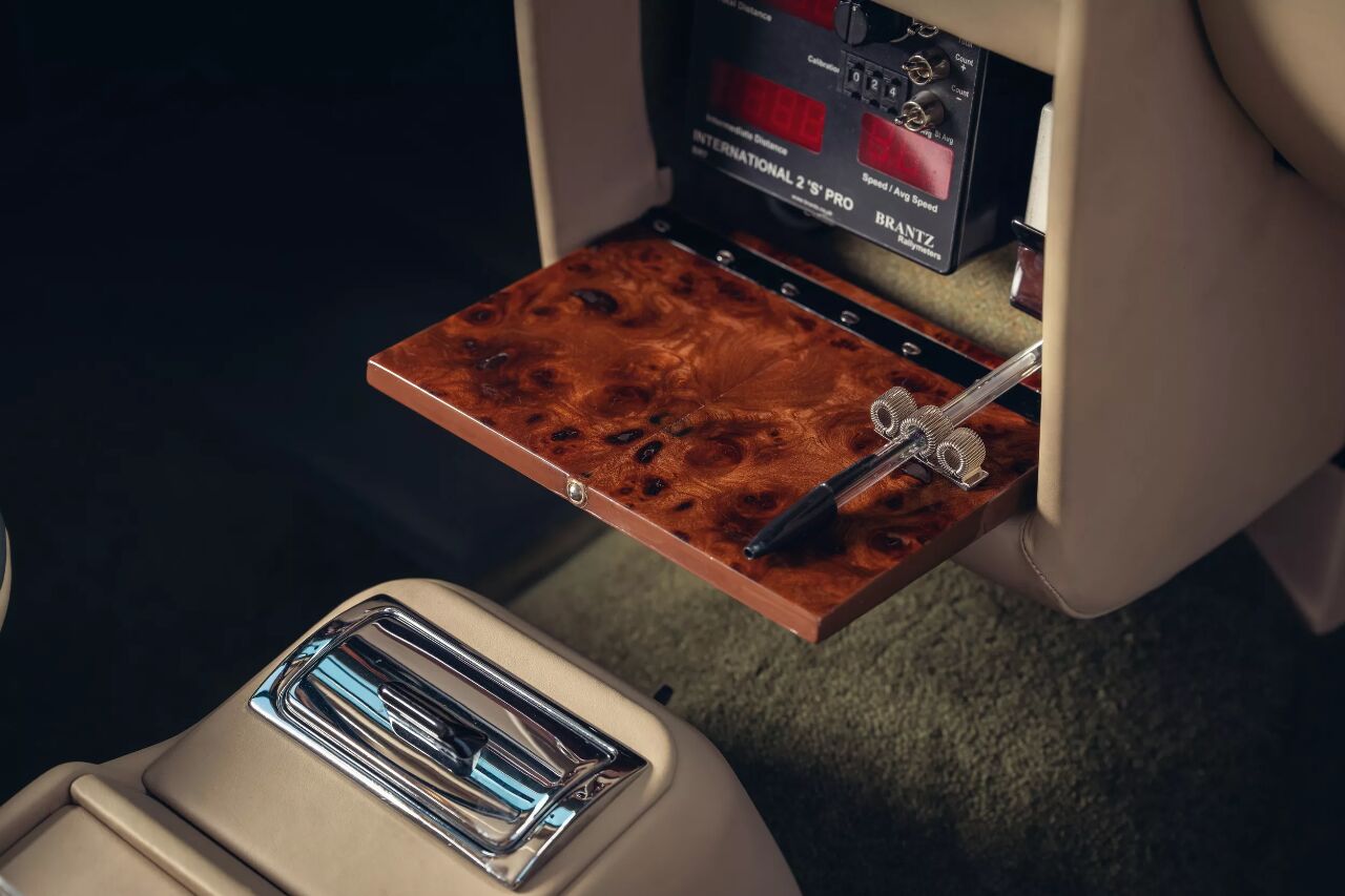 除了实用性的改进,车主还要求加入一些独特的定制元素,比如隐藏式的Brantz拉力赛计时器,它被巧妙地安置在木质面板后面。