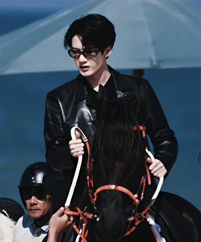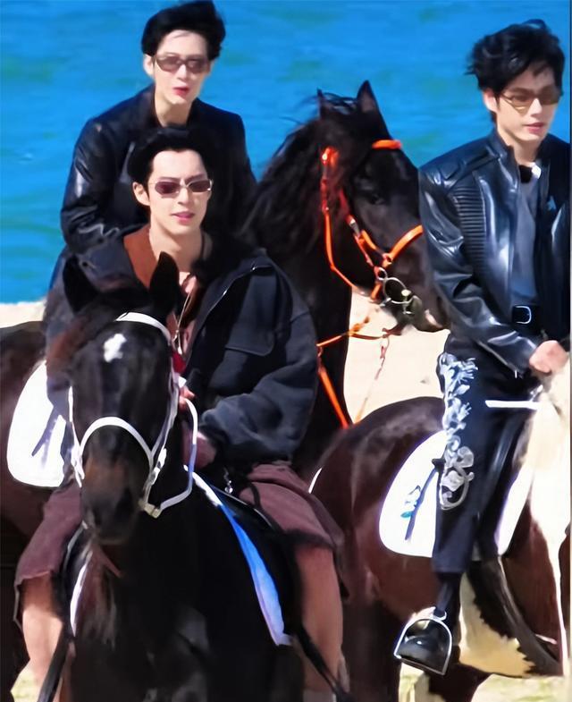 骑马的时候大家都穿着黑色的皮衣,檀健次帅气得充分展现出成熟男士的韵味,王鹤棣却不穿皮衣,反而更有少年那股感觉。