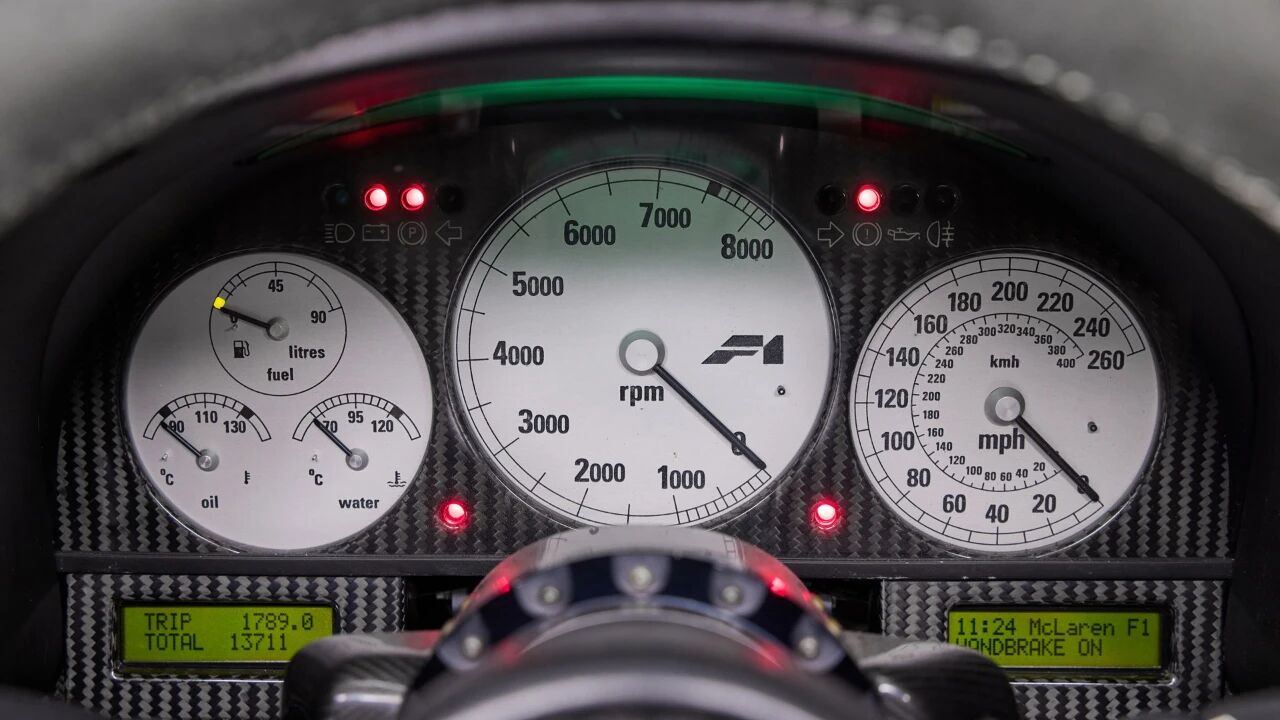 穆雷希望它成为一台“能给驾驶者带来纯粹快感”的汽车,因此F1的每个细节都以驾驶体验为核心。车舱采用三座布局,驾驶者位于中央,副驾驶分列两侧;发动机舱用真金箔隔热;连音响系统都是Kenwood为其定制的轻量化10碟CD机——这一切让McLaren F1既像是来自未来的机械,又像一件经过精密雕琢的艺术品。