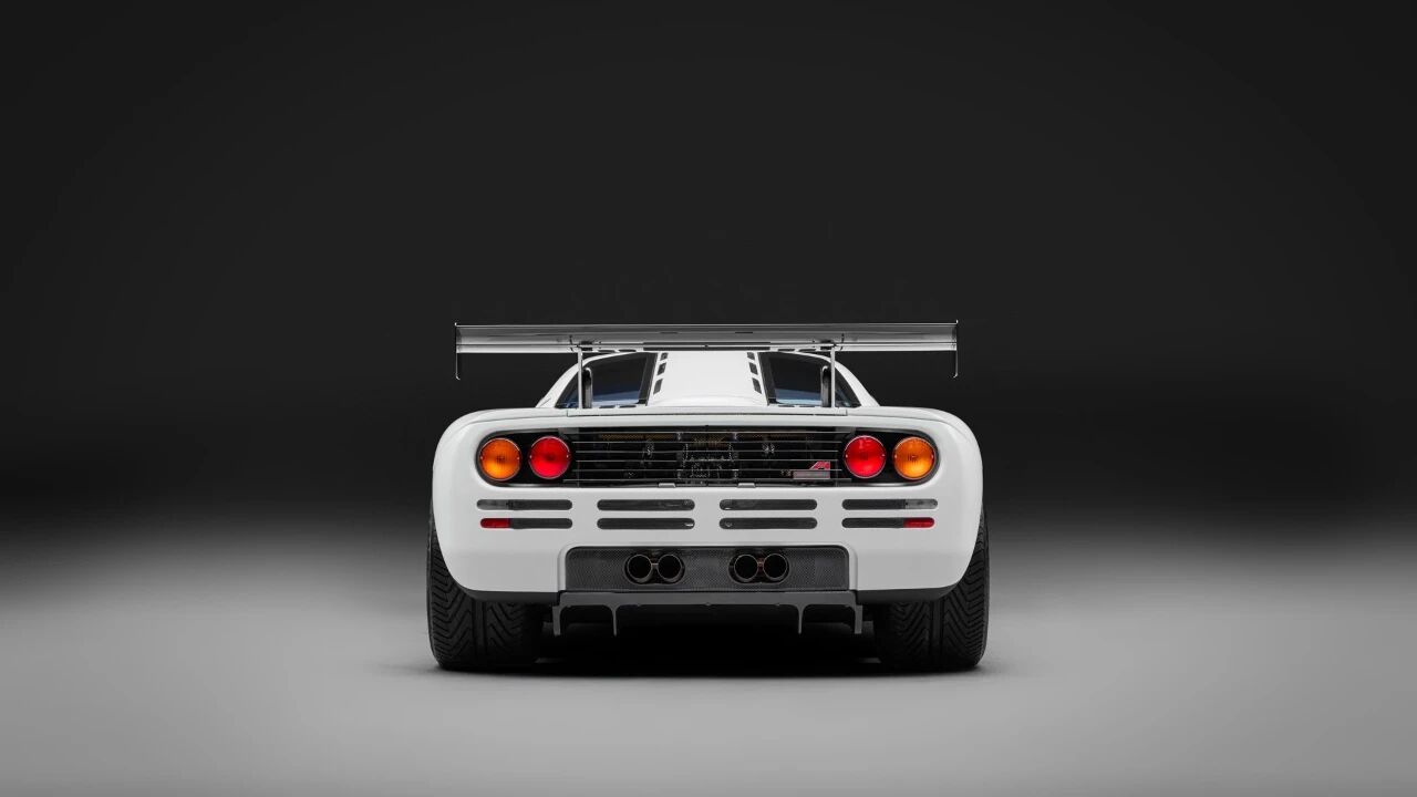 重建过程中,原有的钛金黄外漆被更换为“冰白(Ibis White)”,并安装了极为稀有的High Downforce Kit(高下压力套件)。这套源自F1 GTR赛车的套件包括固定式大型尾翼、重新设计的前保险杠与分流器、LM版前叶子板通风口,让这台车在外观上更接近当年勒芒冠军赛车。
