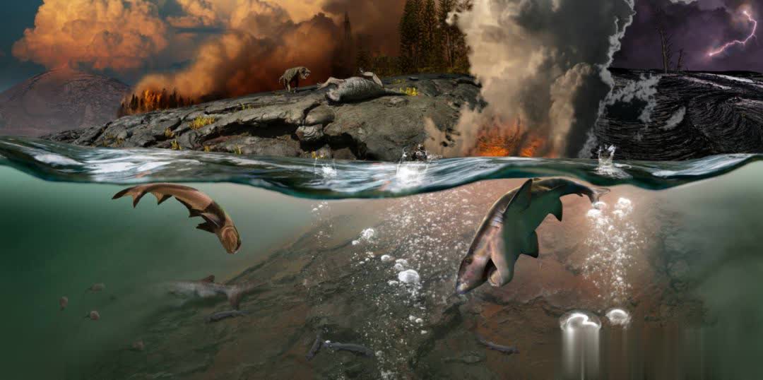 西伯利亚大陆溢流玄武岩喷发所导致的一系列包括古海洋持续性缺氧、地球快速增温和海洋酸化事件等极端环境事件,共同让地球表面呈现出一片万物凋零、毫无生机的凄惨景象,造就了地球演化历史上规模最大的生物大灭绝。