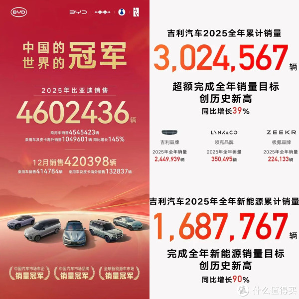 为啥?因为销量冠军的奖杯,今年格外沉。大盘是涨了,可仔细一看,多数车企年初吹的牛,都没能圆回来。比亚迪卖了460万辆,牛不牛?可人家最初的目标是550万。理想卖了40.6万辆,但目标定在64万,完成率刚过六成。也就零跑、小鹏这几个成了“别人家的孩子”,尤其是零跑,几乎120%完成任务,成了新势力里最猛的卷王。