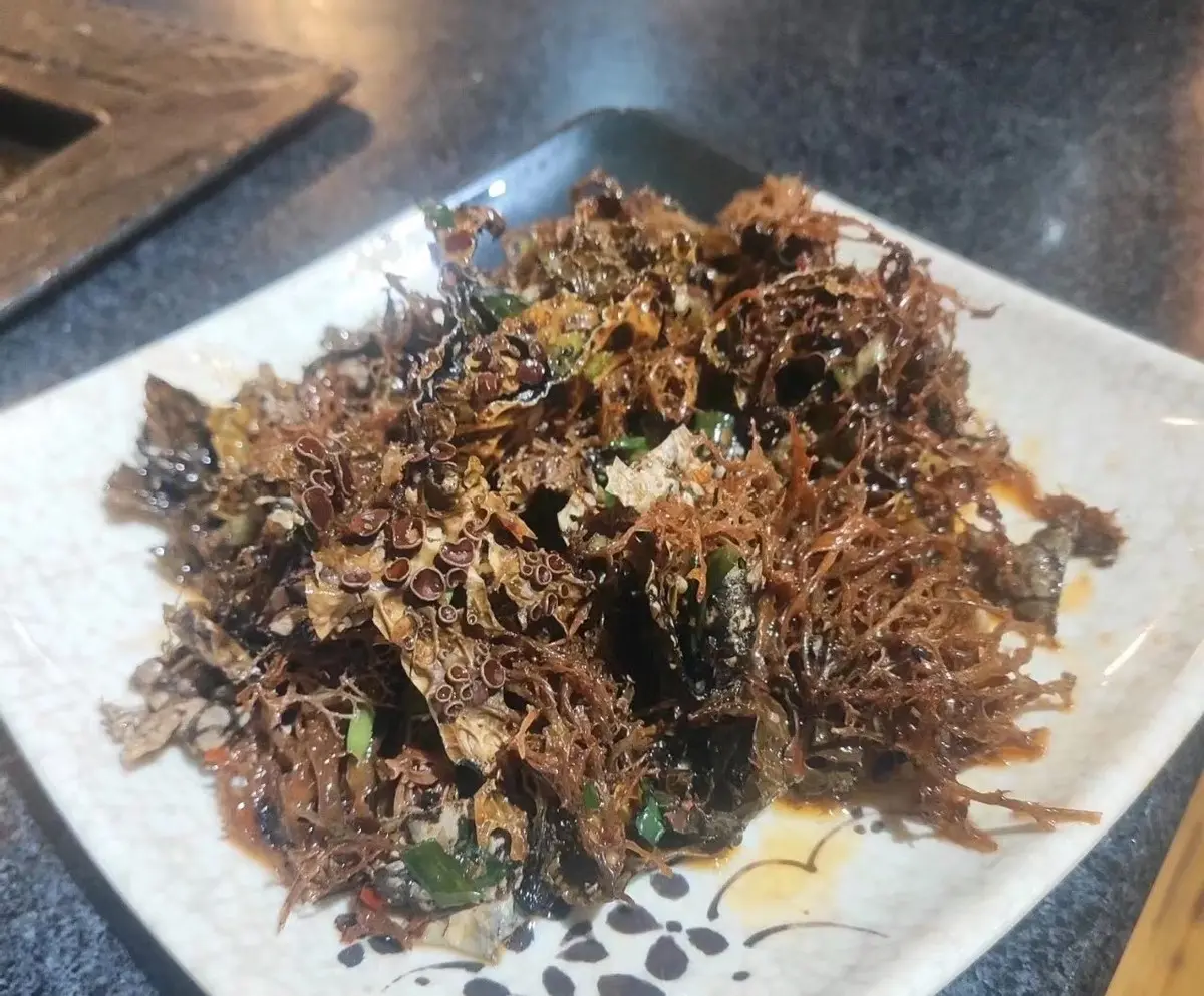 在本地人眼里这道菜吃起来口感异常清脆,酸辣可口,而且越嚼越香。当然了,这种美味还是只有那些有勇气的人才敢品尝,很多外地人还是不敢轻易尝试的。