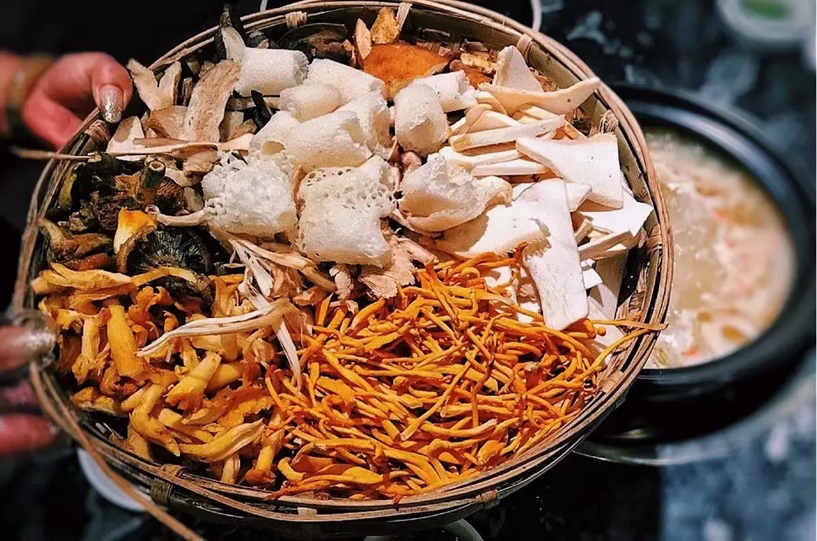 当地人喜欢将新鲜采集下来的菌类放在一起煮火锅,这样不仅做出来的汤鲜香清亮,而且各种菌类也变得鲜嫩多汁。