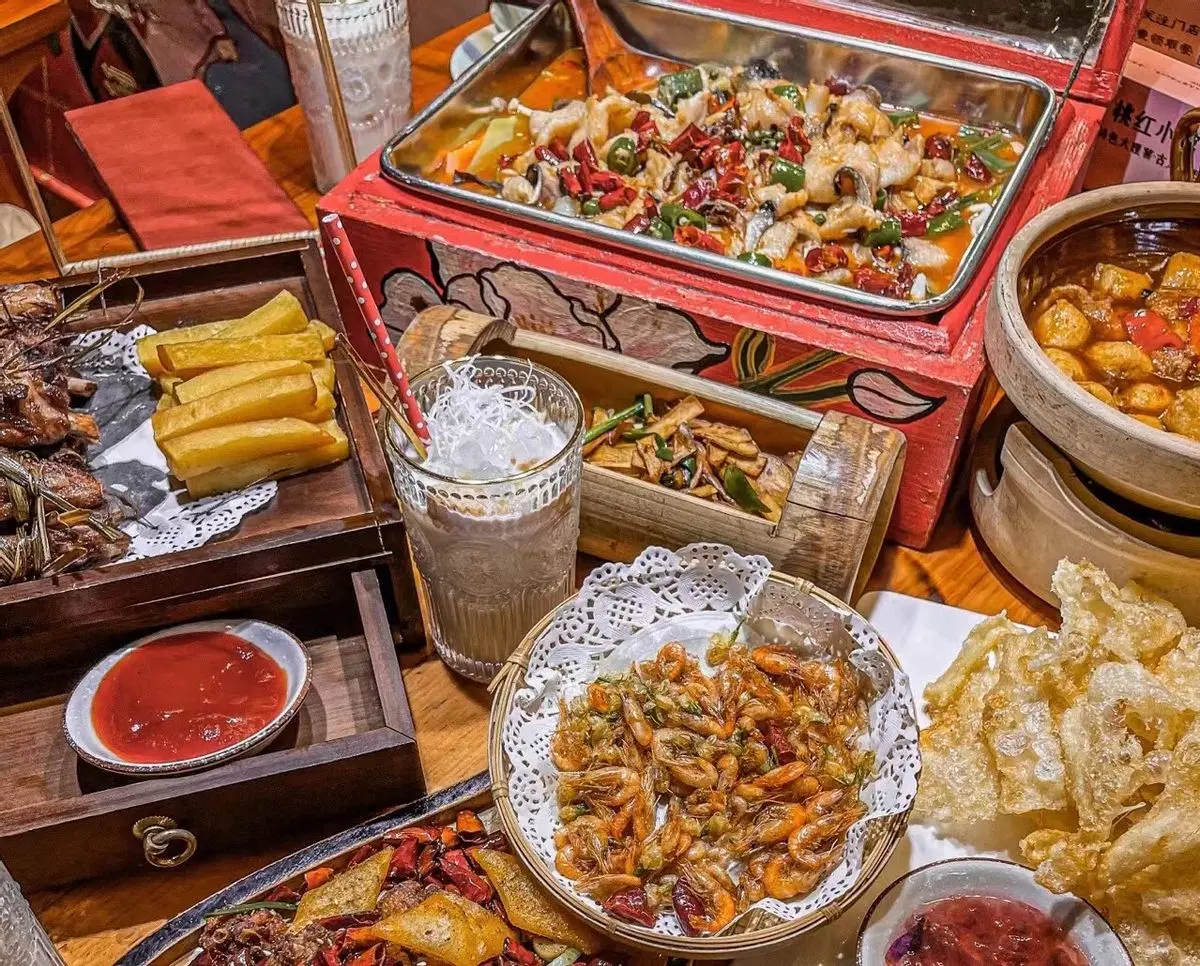 云南美食以鲜、甜、酸为主要特点,其种类丰富多样,不仅有汽锅鸡、宜良烤鸭等传统名菜,还有宣威火腿、鲜花饼等特色小吃,当然还有不少怪味美食。