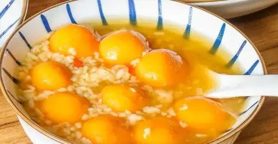 2、一半的红薯泥加糯米饭揉成面团,搓成小圆子。锅中水开水下圆子煮熟,倒入酒酿枸杞和红糖煮开即可。