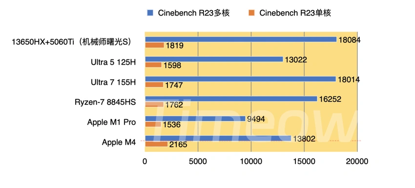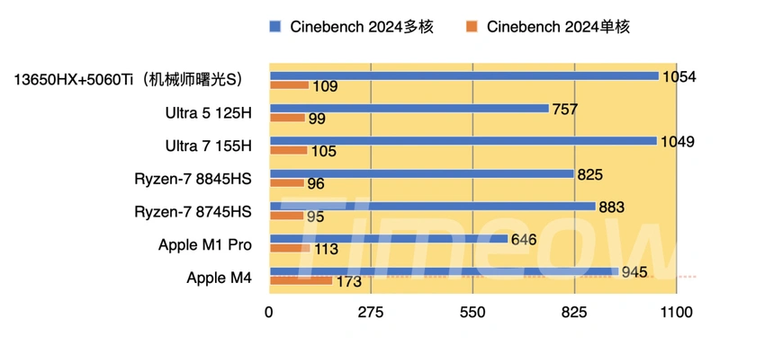 在数据库中,这个成绩介于8845HS和125H之间(M4数据暂未收录)。