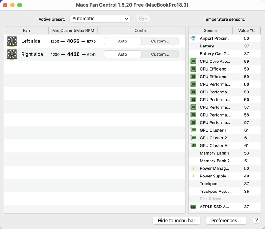 但前面我也说过,苹果的默认风扇策略是保静音不保性能,满负荷但静音的代价就是CPU会主动降频。如果你需要长期高负荷运行、想要提升系统稳定性的话,用第三方风扇控制工具调节一下风扇转速比较稳妥。