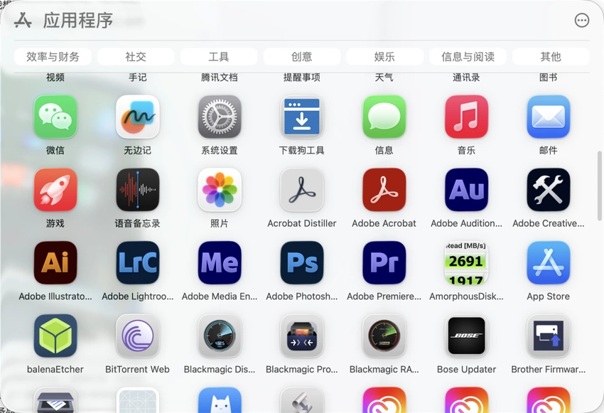 在这台Mac mini上,我只在上面安装了Adobe全家桶、office套件、Chrome浏览器以及必要的软件,日常工作娱乐所用的文档、素材、影视音乐等文件,一律存储在家里的NAS、移动固态硬盘和大厂云存储上。
