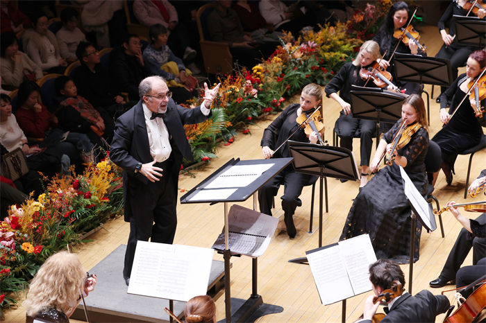音乐会以上半场以门德尔松的《A大调第四交响曲“意大利”》拉开序幕。作品旋律流畅、结构清晰,洋溢着青春与阳光的气息。乐团在托多罗夫的引领下,将作品中明朗的节奏感与歌唱性旋律处理得轻盈而富弹性,使这部经典交响曲在新年初始之夜显得格外清新。