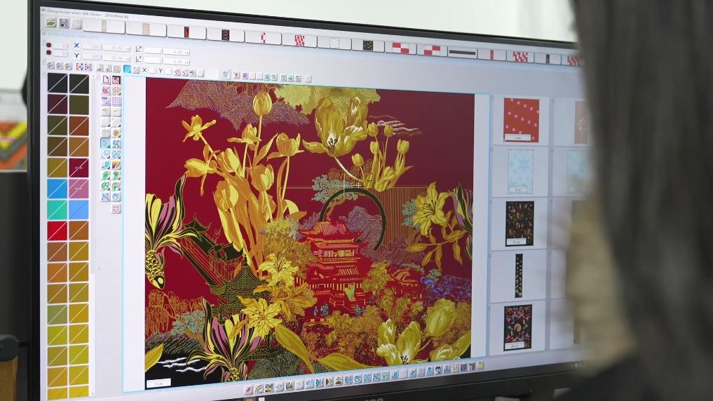 李珍珍2023年毕业于北京服装学院,大三时就曾来到位于浙江海宁市的时尚面料设计中心实习,毕业后便留了下来。闲暇时,她会去博物馆为自己“充电”,每当灵感到来,便第一时间拿出平板电脑将图样快速记录下来。