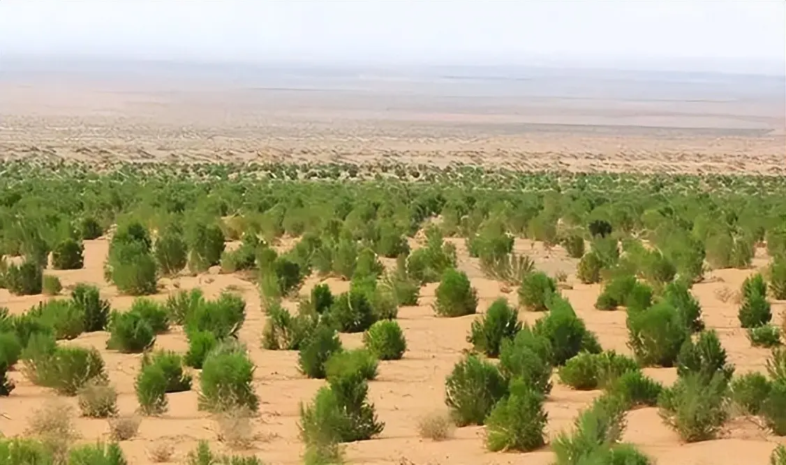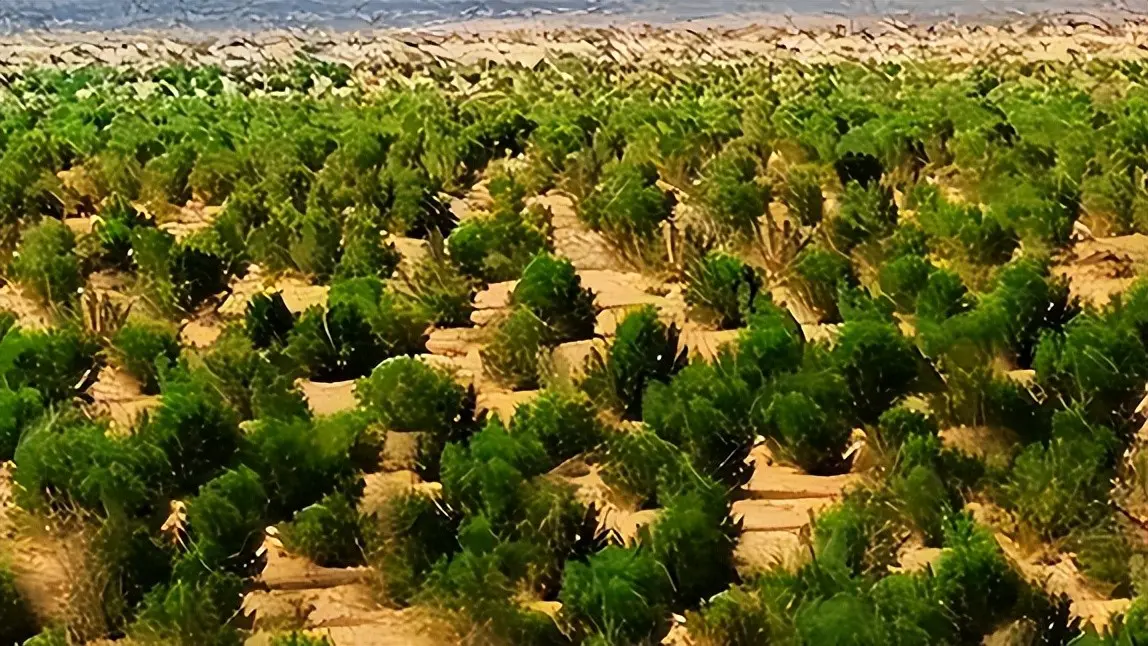 甘肃的沙丘上,沙柳长得郁郁葱葱,像一道绿色的屏障,牢牢挡住了移动的黄沙,周边的农田再也不用担心被沙子掩埋,农作物产量也稳定了不少。