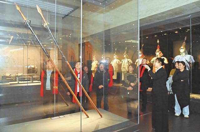 近日,在山海关中国长城博物馆,游客跟随讲解员参观古代兵器、城砖、文献等文物,了解长城历史。元旦假期,博物馆成为市民游客学习长城文化的热门场所,丰富的馆藏文物与多样的展陈方式,让长城历史故事更加