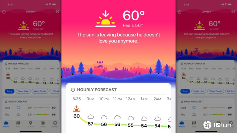 CARROT Weather提供五种不同风格的文字天气预报——包括专业版和带有粗口、搞笑吐槽的娱乐版,让你的天气报告不再单调。你可以直接在手表上查看周、日、小时天气详情。该应用承诺永不出售或共享你的个人数据,并且可以自行选择并切换使用的天气服务。