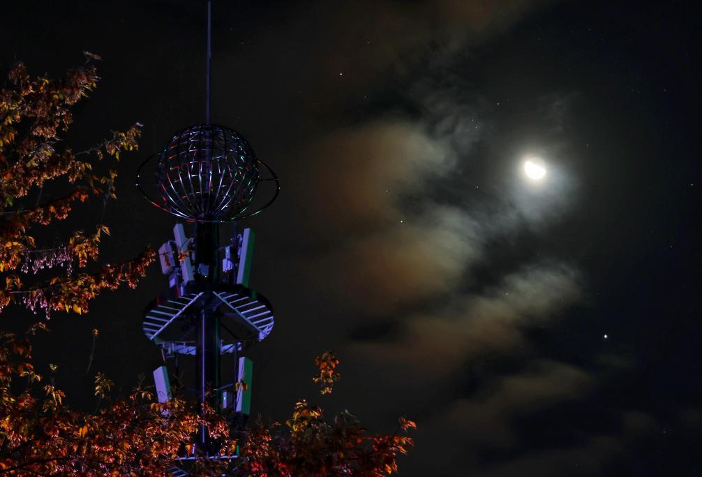 2025年10月14日凌晨在黑龙江省佳木斯市同江市拍摄的木星伴弦月。