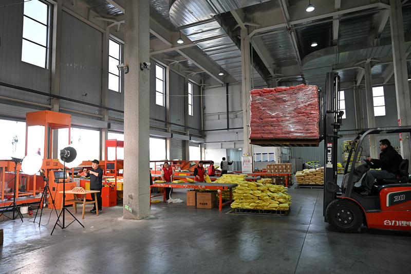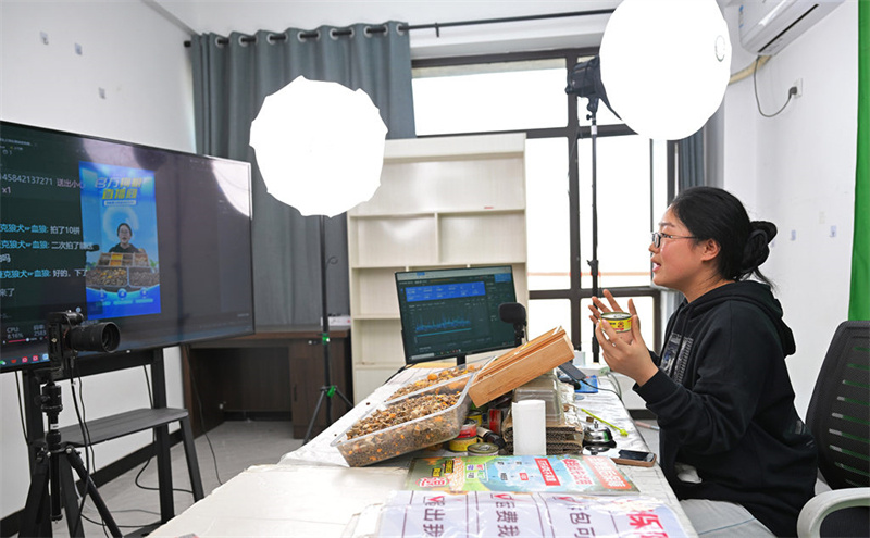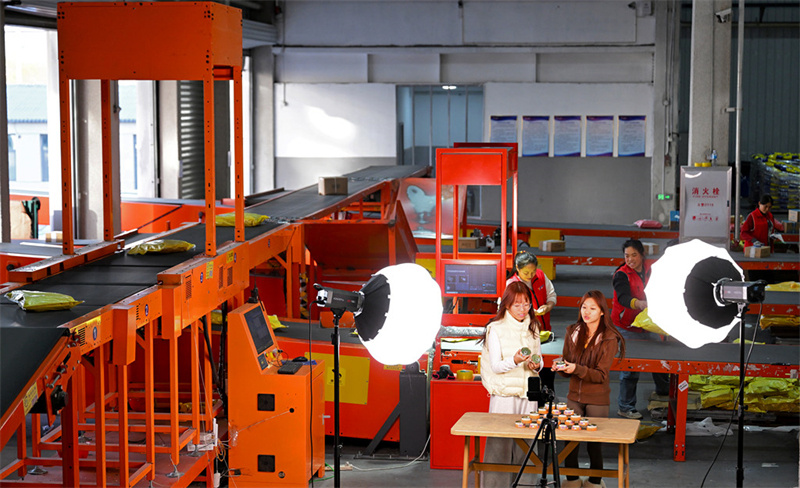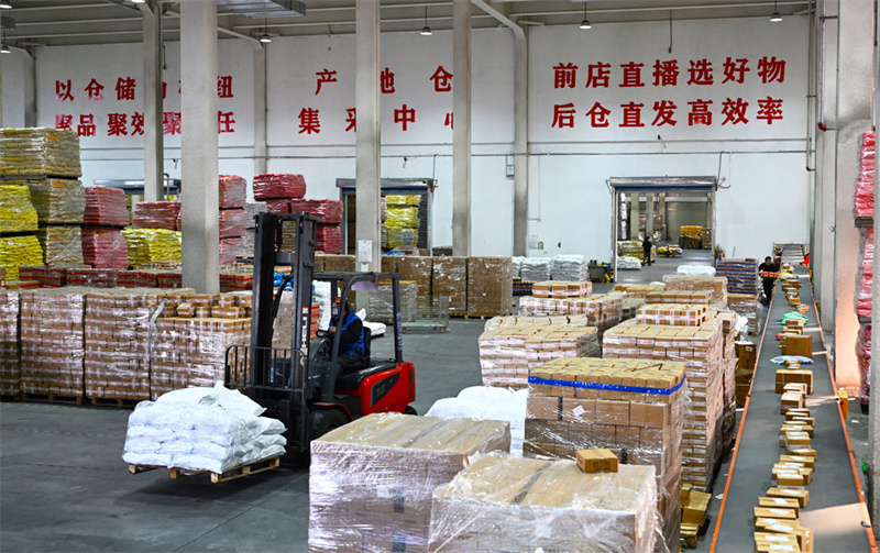 近日,在邢台市南和区义楠(河北)供应链有限公司仓库里,主播在网上推介宠物食品。