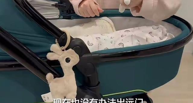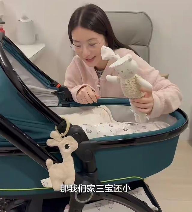 最让人忍不住心软的,是刚出生不久的三宝。小家伙安静地躺在婴儿车里,方媛拿着可爱的毛绒玩偶在一旁温柔逗弄,还轻声感叹因为三宝太小,暂时还不能一起出远门游玩。