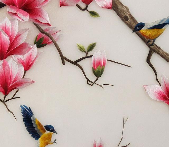 玄关装饰画——手工刺绣玉兰画《玉堂富贵》