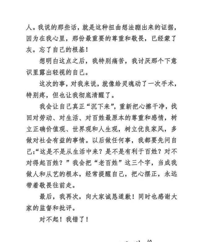 闫学晶称:“大家批评的,不是‘闫学晶说错话’,而是‘闫学晶怎么变成这样了’。想到这儿,我开始认真审视自己,这根本不是一句‘没说对’或者‘没把握好’那么简单,而是我的思想出了严重的偏差。”
