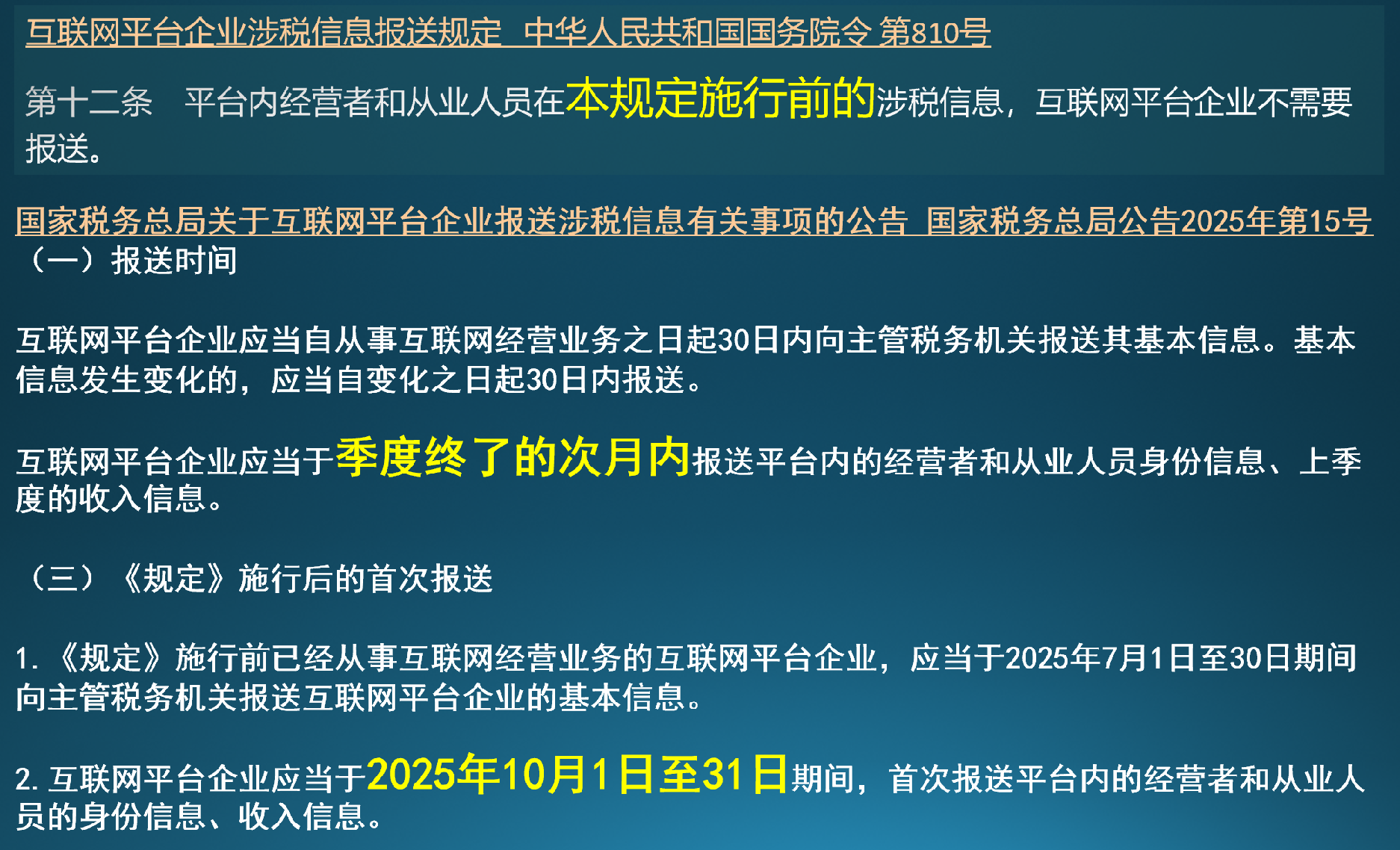 2025年6月《互联网平台企业涉税信息报送规定》(以下简称:规定)及配套文件的出台, 许多电商就在猜测,国家让平台报的是2025年7月开始的数据,之前的数据也没让平台报,那么是不是税局就不会查到我们了呢?