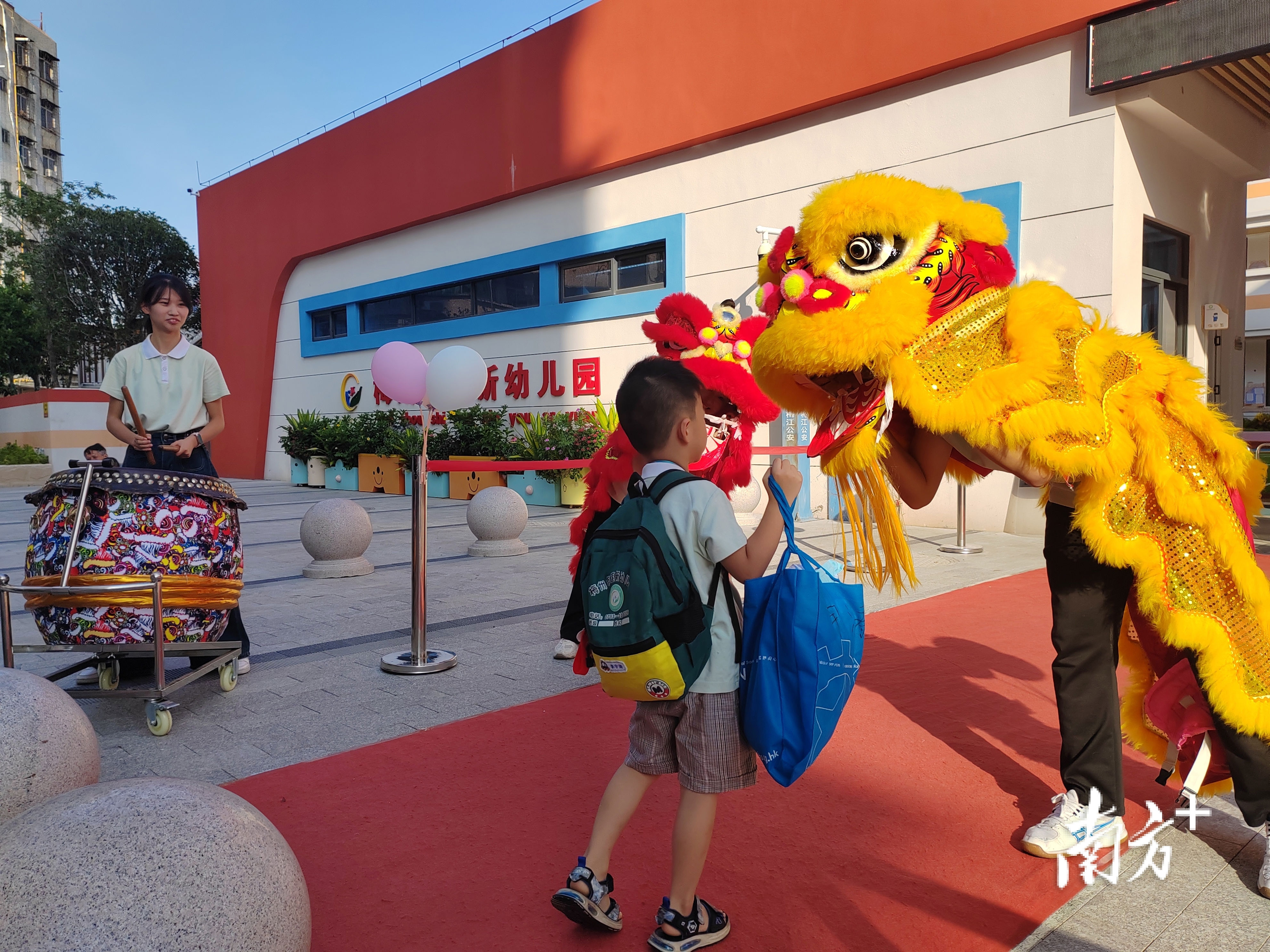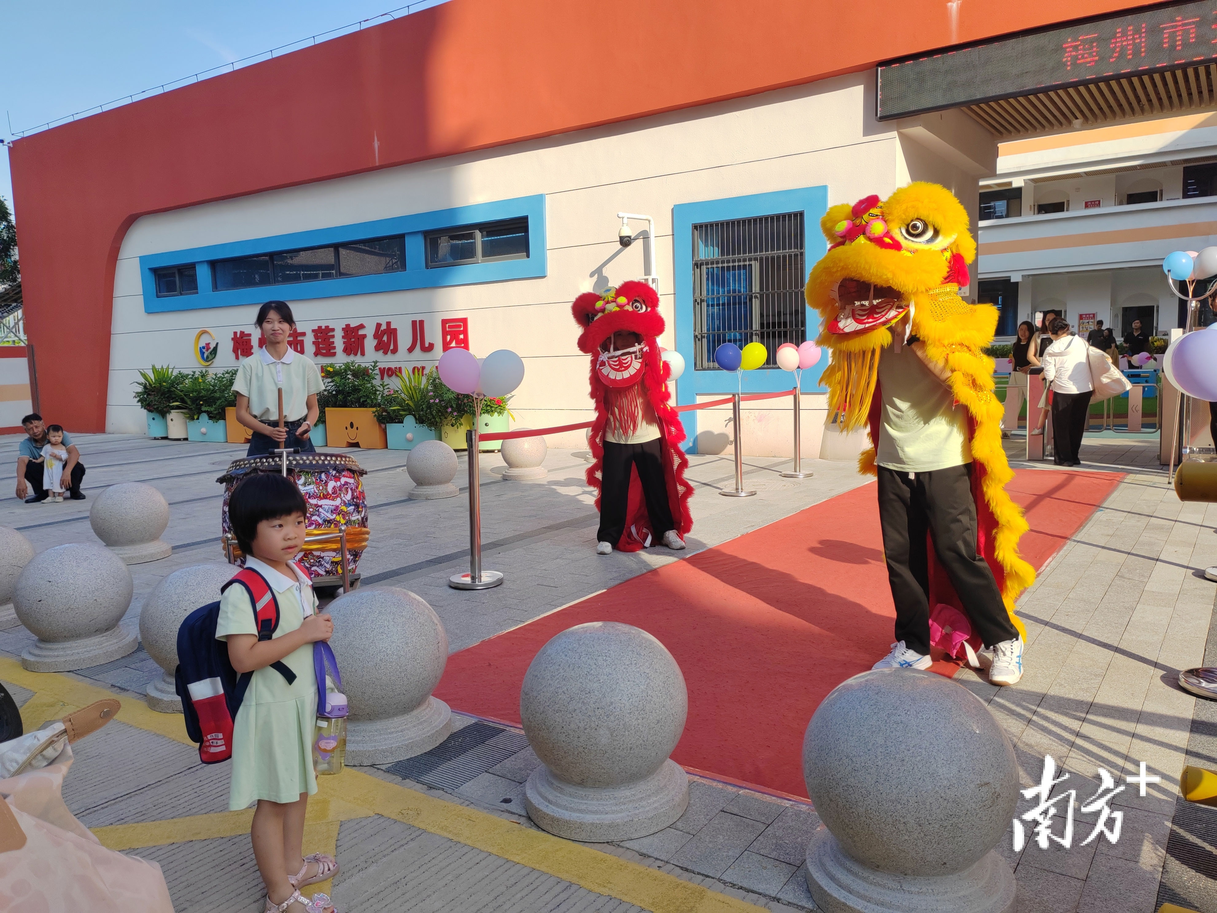 与此同时,位于梅江区江北东厢教师村的梅州市莲新幼儿园新园区也迎来了首批入园的小朋友们。崭新的教学楼、宽敞的活动室、色彩斑斓的游乐设施,让孩子们眼前一亮。为了欢迎新同学的到来,老师们特地以热闹的舞狮,消解孩子们陌生紧张的情绪。