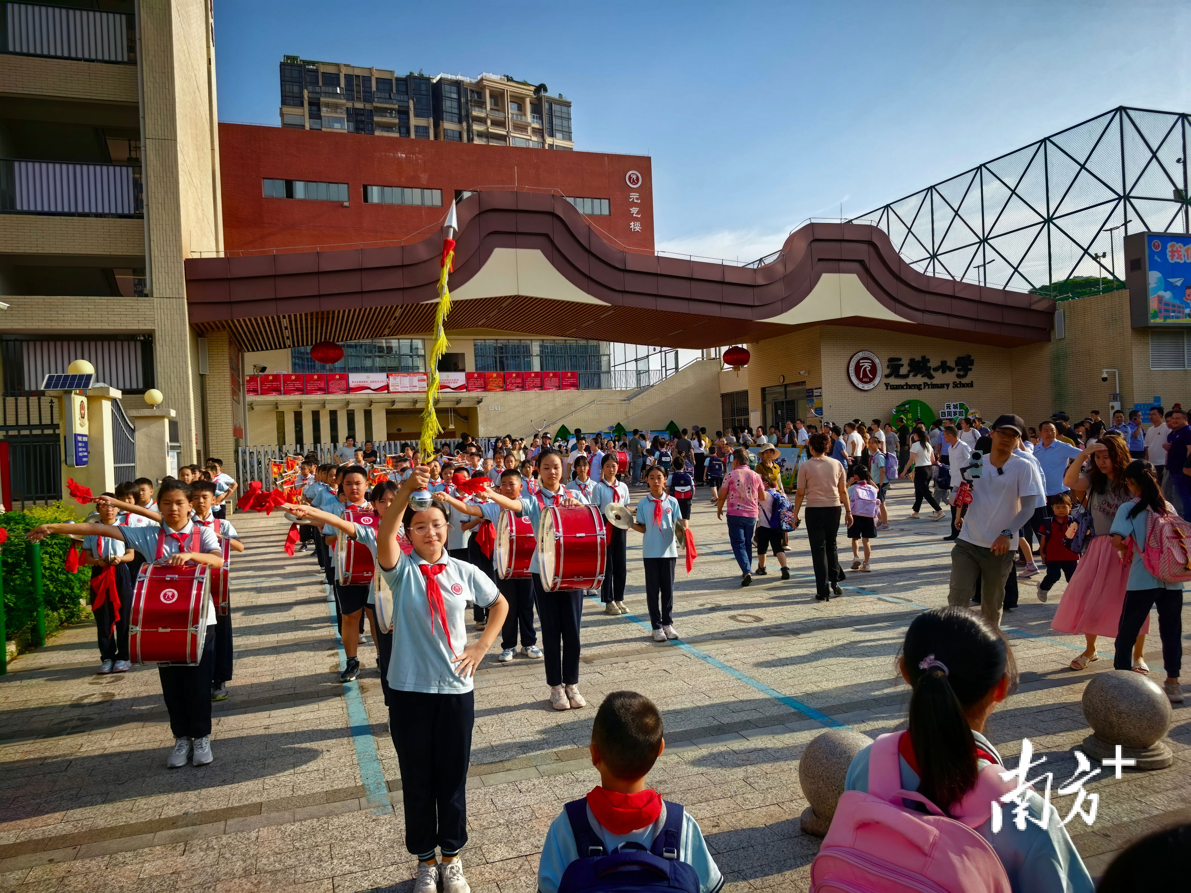 7时40分,梅江区元城小学门口已是一派热闹景象。校园鼓号队整齐列队,奏响激昂的乐曲迎接返校学子。校领导及教师们早早等候在校门口,为每一位入校的学生送上亲切的问候与祝福。