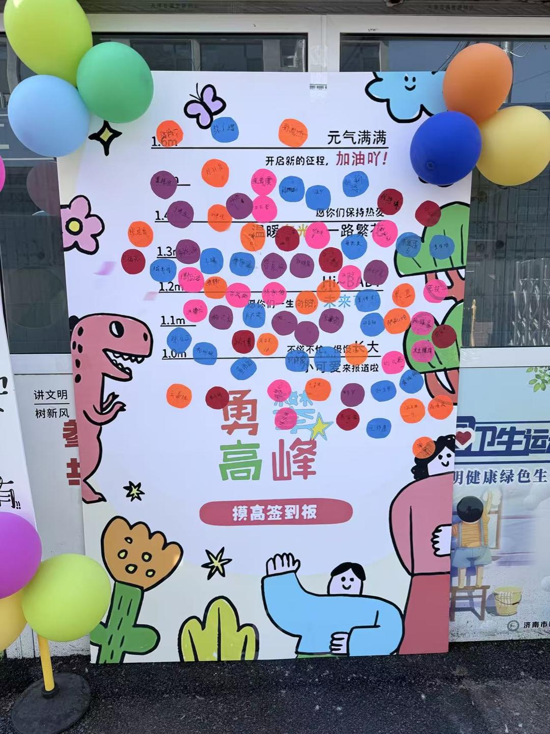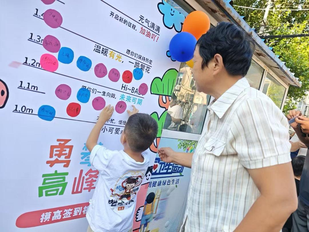 9月1日上午,济南市明星小学附属幼儿园精心策划了一场充满童趣与仪式感的开学典礼,让孩子们在欢乐互动中开启新学期。 开学第一天,幼儿在家长的带领下进入幼儿园。随后,“跳一跳摸高签到墙”成为孩子们的乐