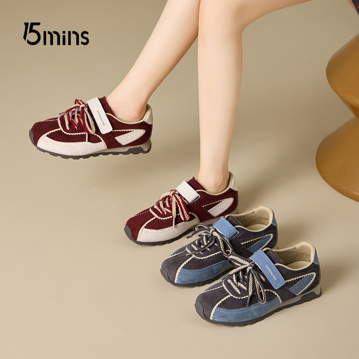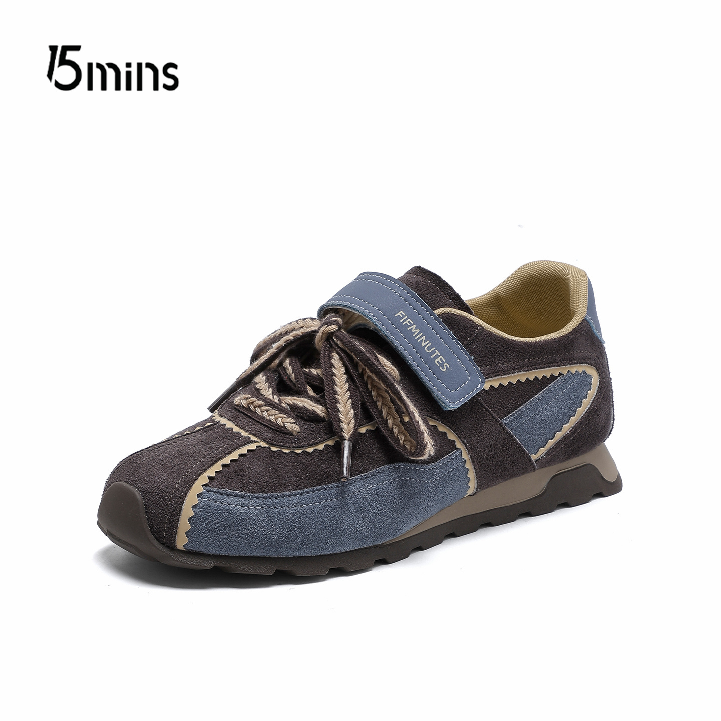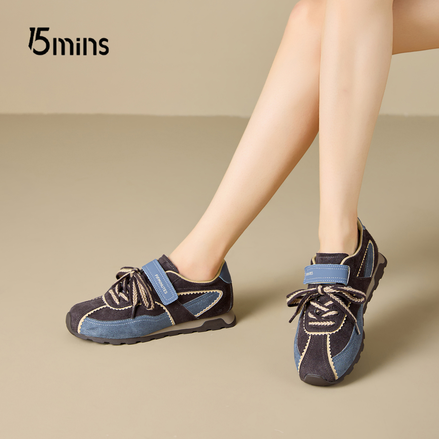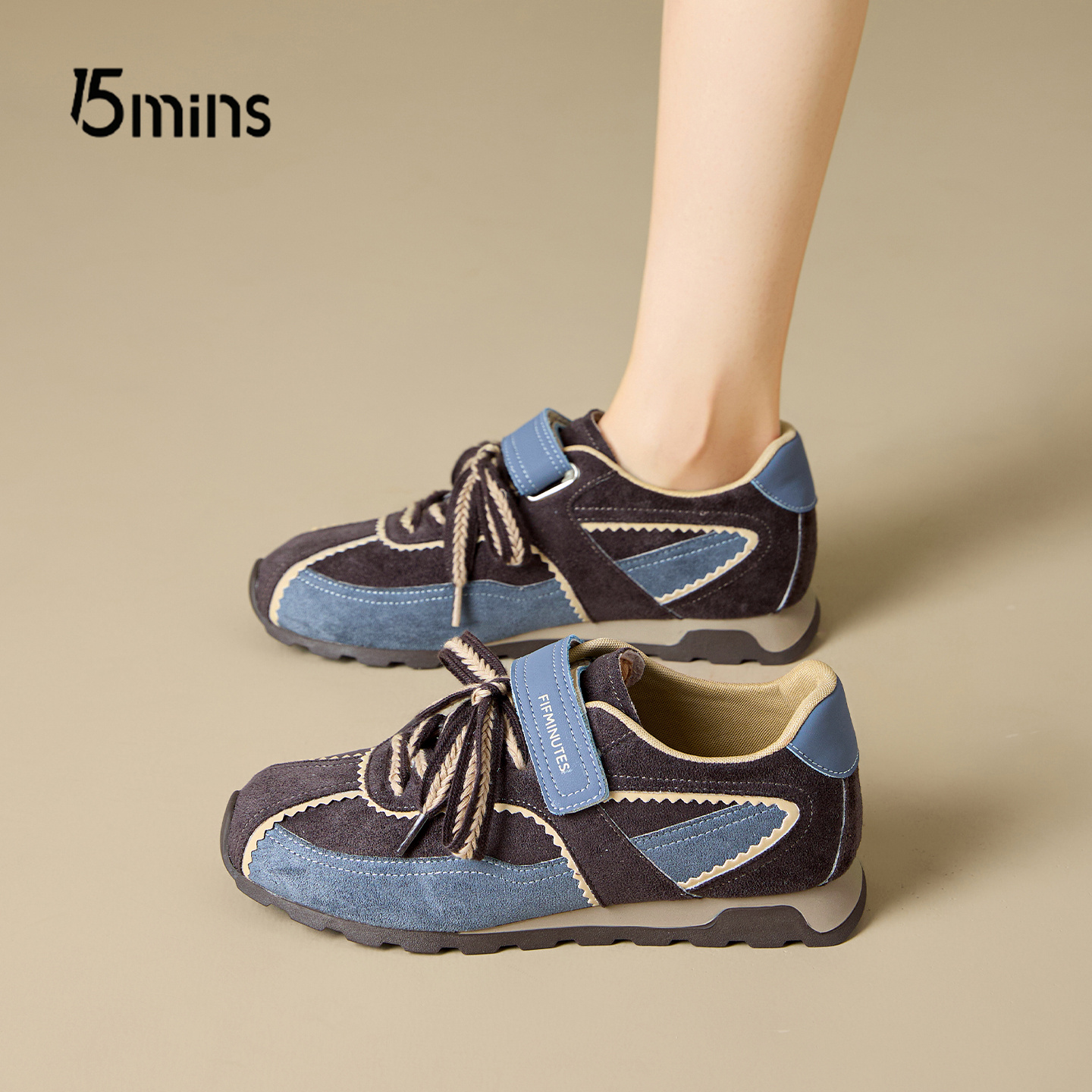15mins2025秋季新款厚底德训鞋女款魔术贴运动休闲鞋显脚小老爹鞋