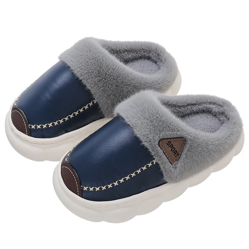 儿童棉拖鞋PU皮防水软底防滑加绒厚亲子成人情侣居家冬季保暖棉鞋,浙江 杭州