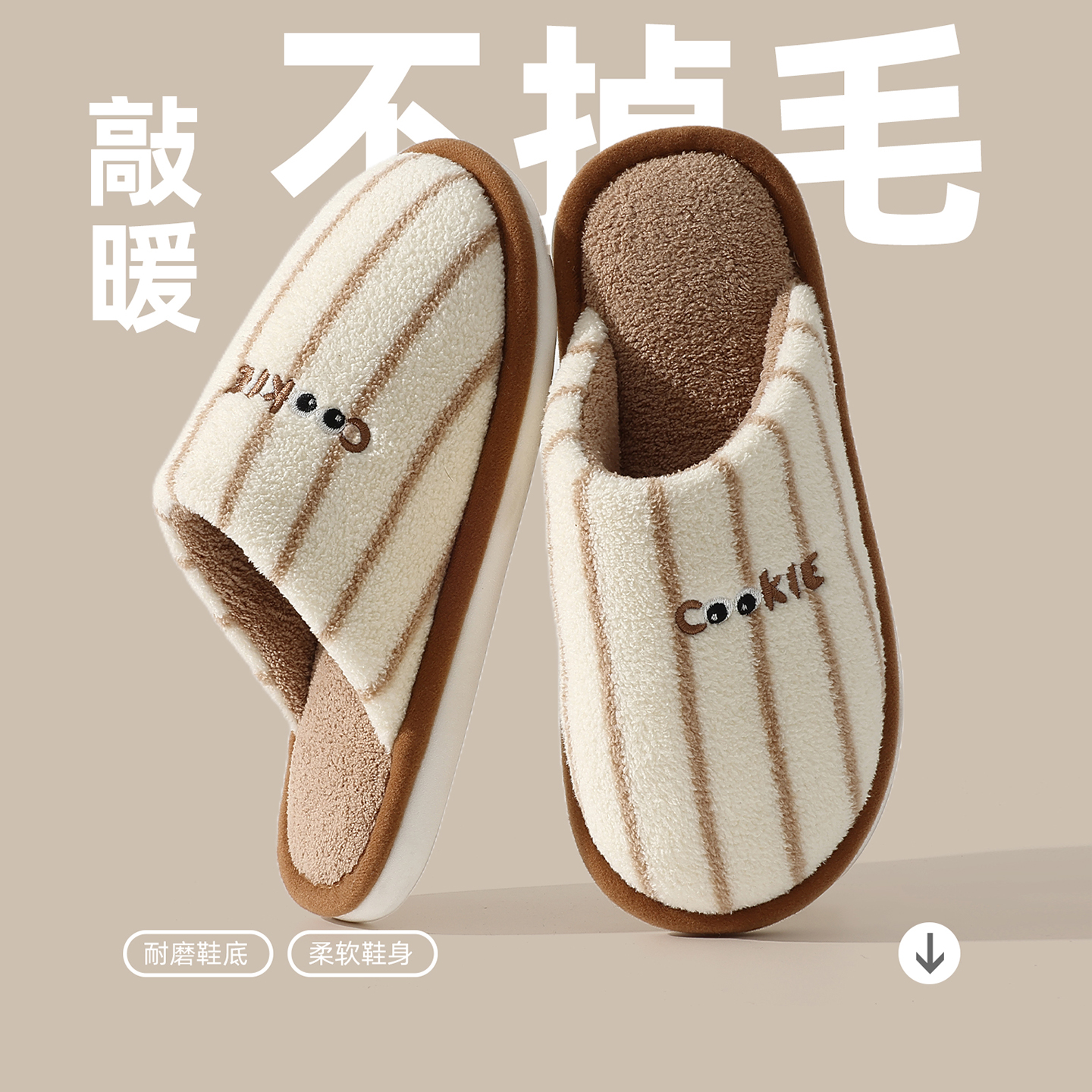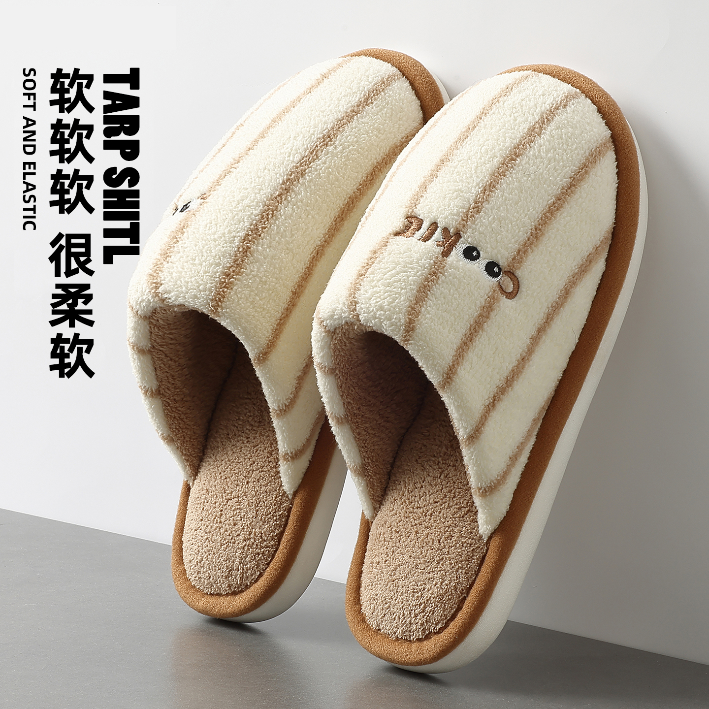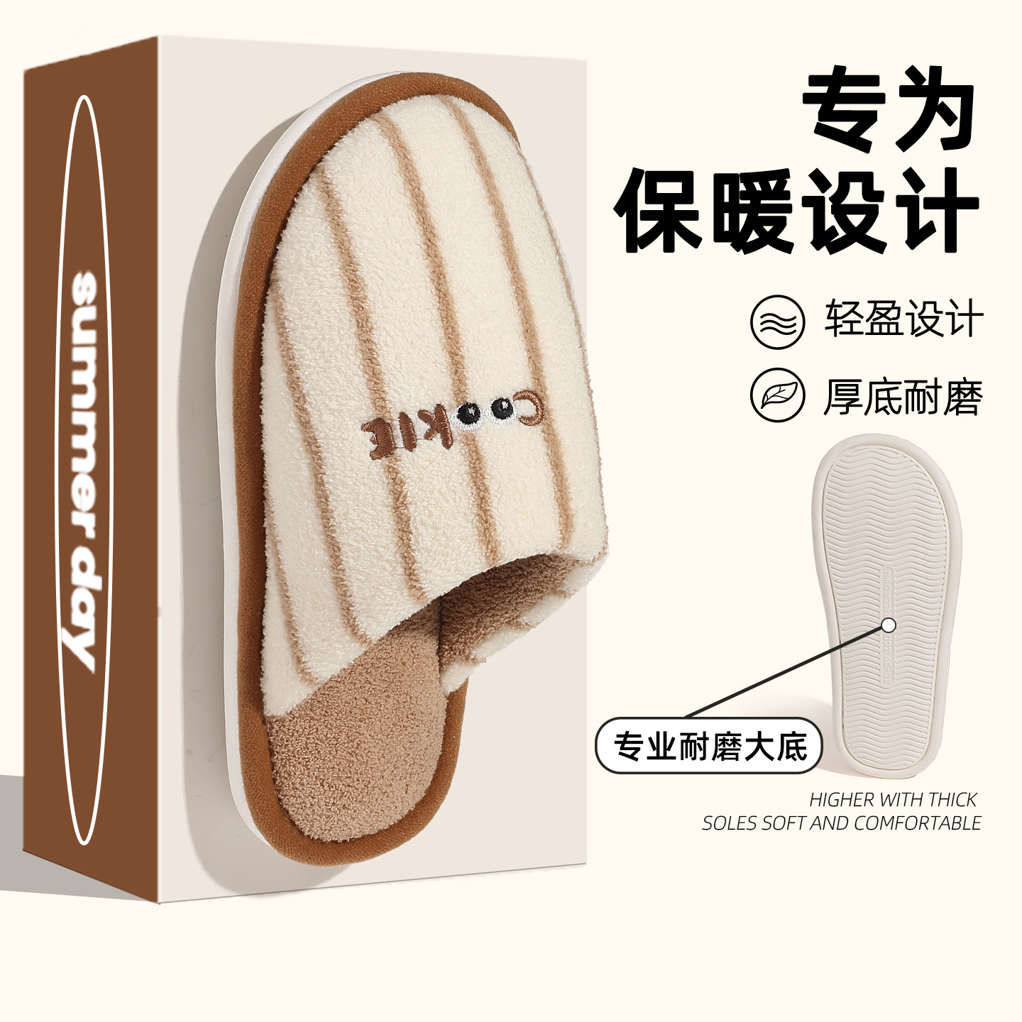红豆棉拖鞋女款2025冬季新款条纹风居家棉鞋厚底加厚鞋面棉拖鞋女,浙江 杭州
