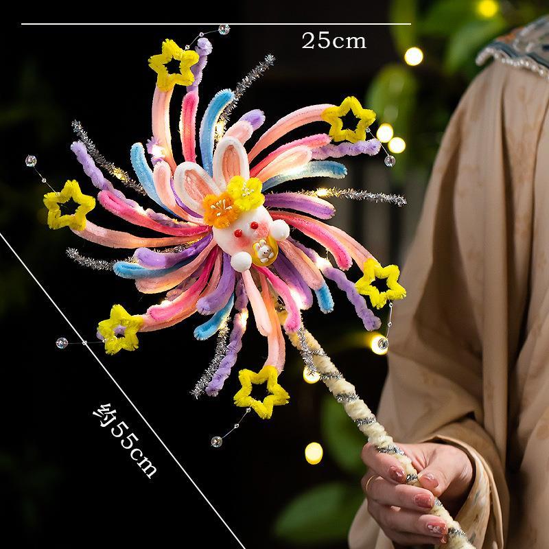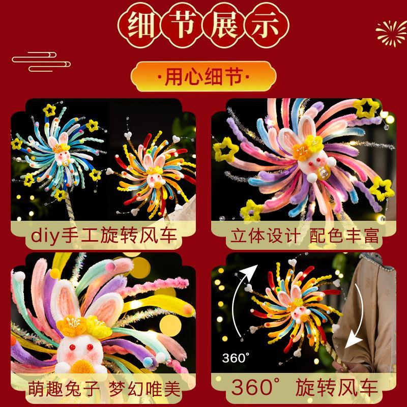 新年元旦花灯笼旋转风车发光灯笼扭扭棒手工diy材料儿童手提兔子