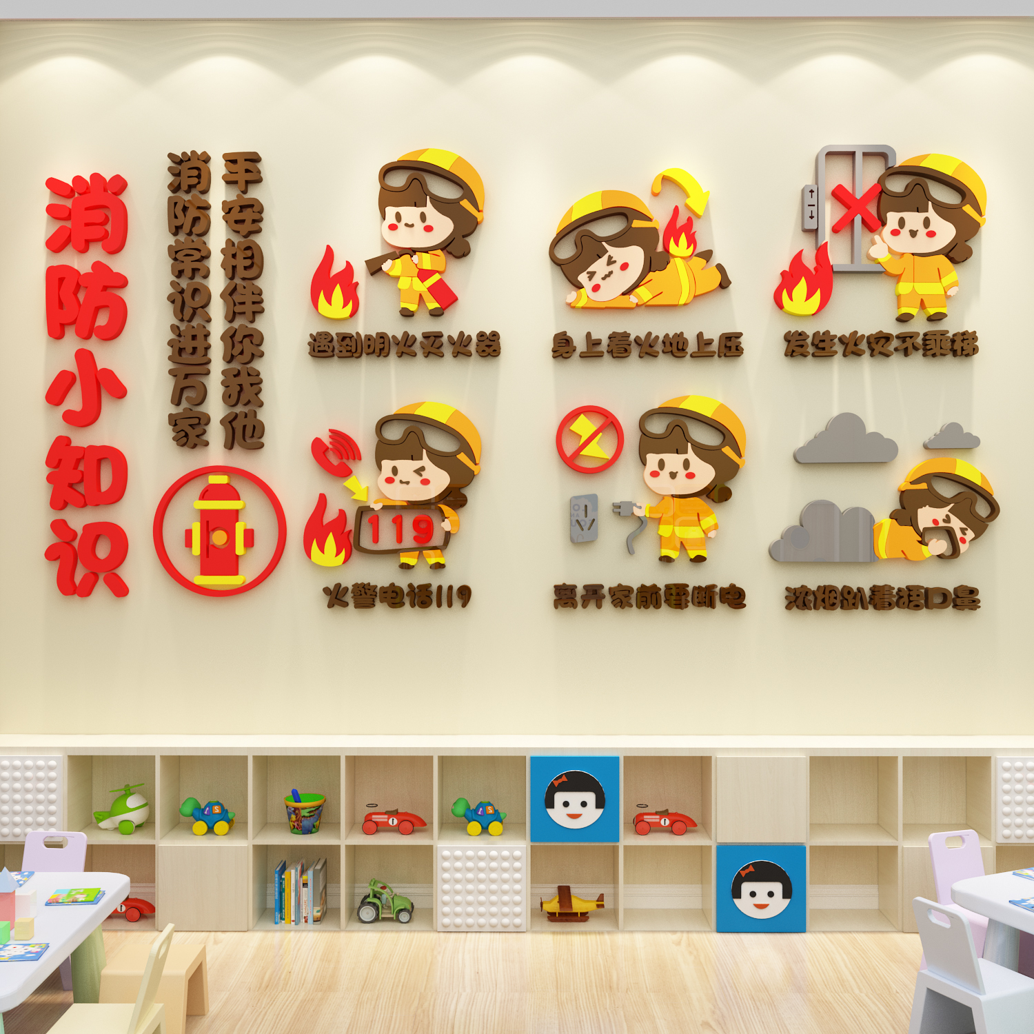 安全消防教育墙贴面幼儿园环创主题成品材料装饰文化布置室黑板报,江苏 徐州