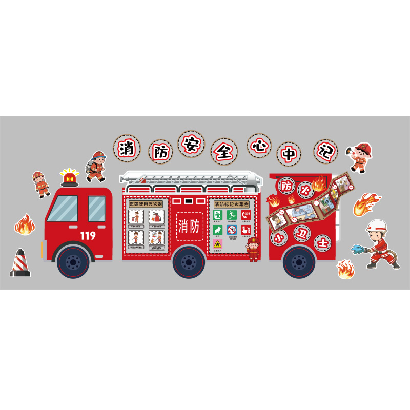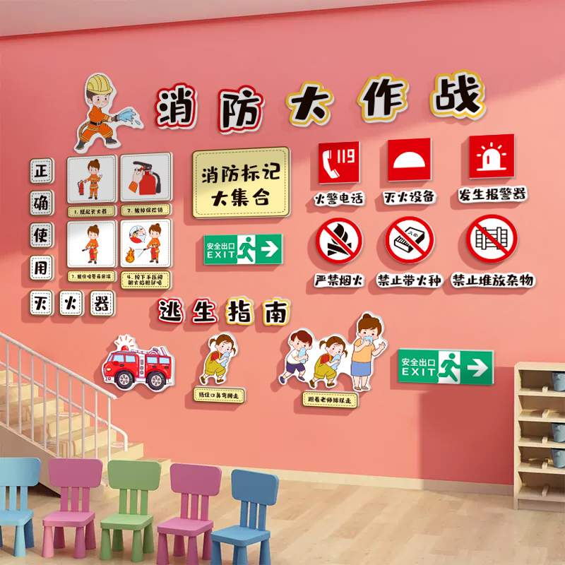 安全消防教育墙贴面幼儿园环创主题成品材料装饰文化布置室黑板报