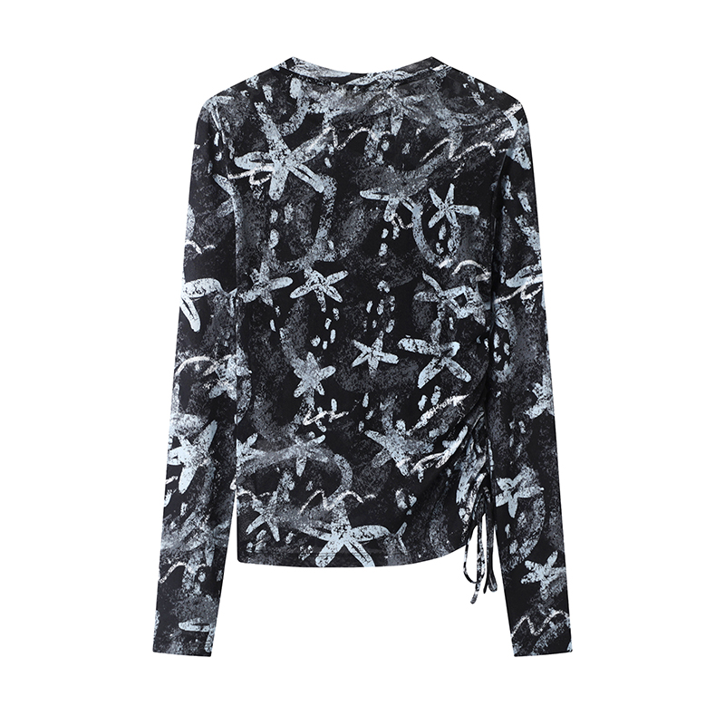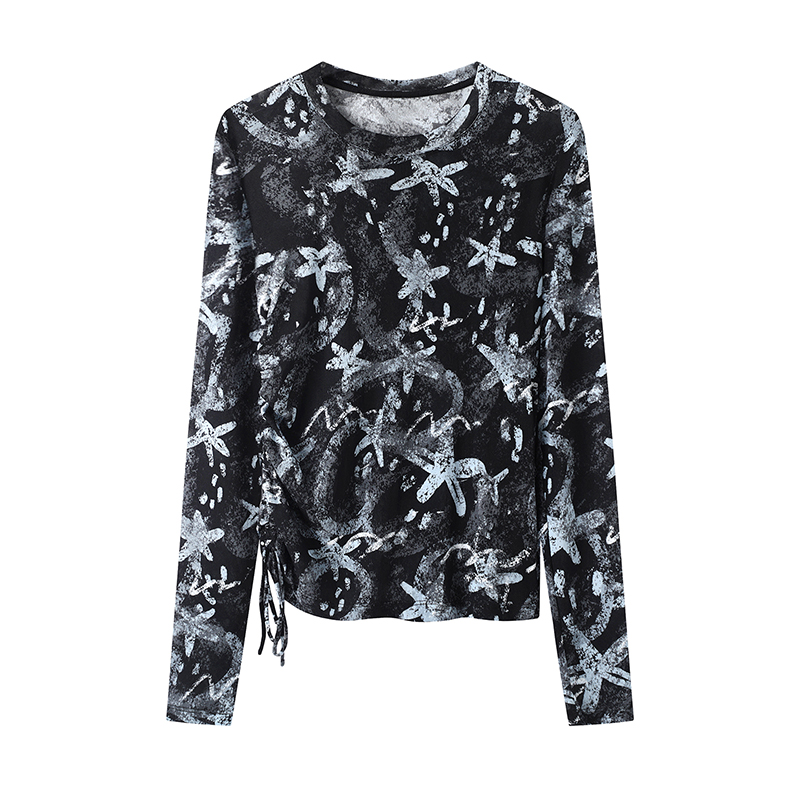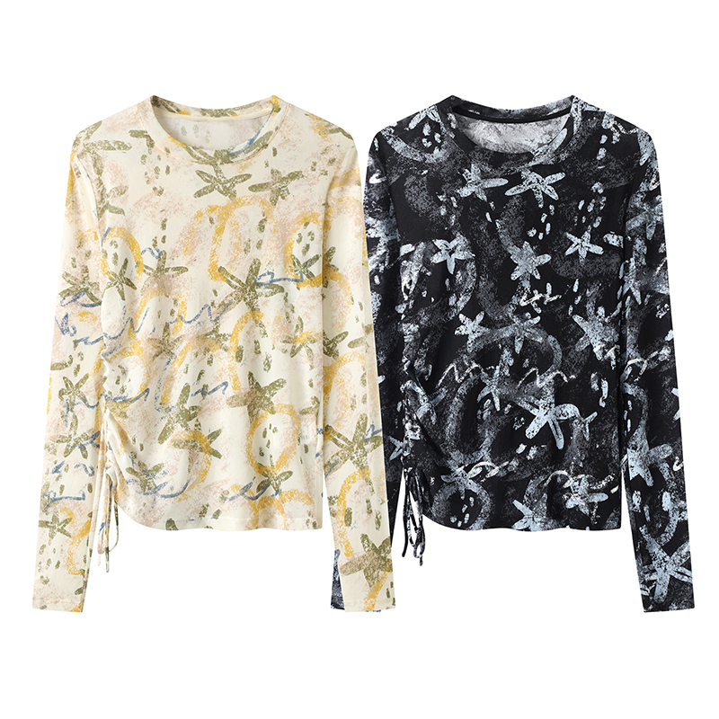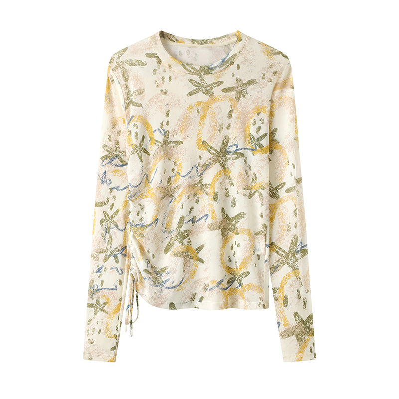 长袖T恤2025秋季新品复古扎染印花轻感皮肤衣显瘦打底衫上衣女,江苏 苏州