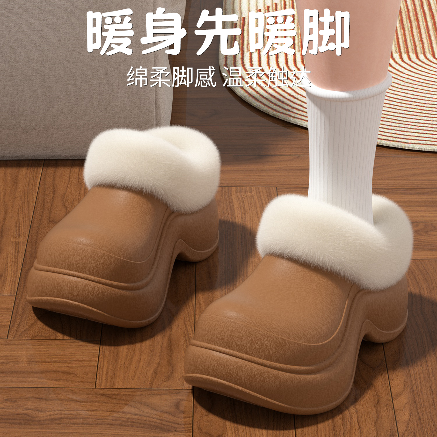 厚底棉拖鞋女款2025新款居家外穿防水外穿增高踩屎感保暖雪地棉鞋,浙江 宁波