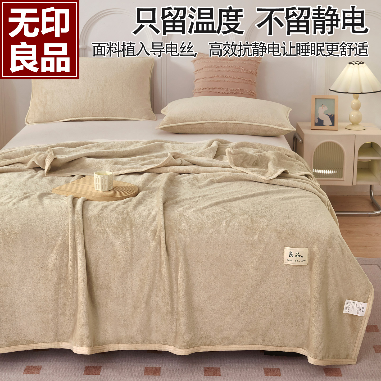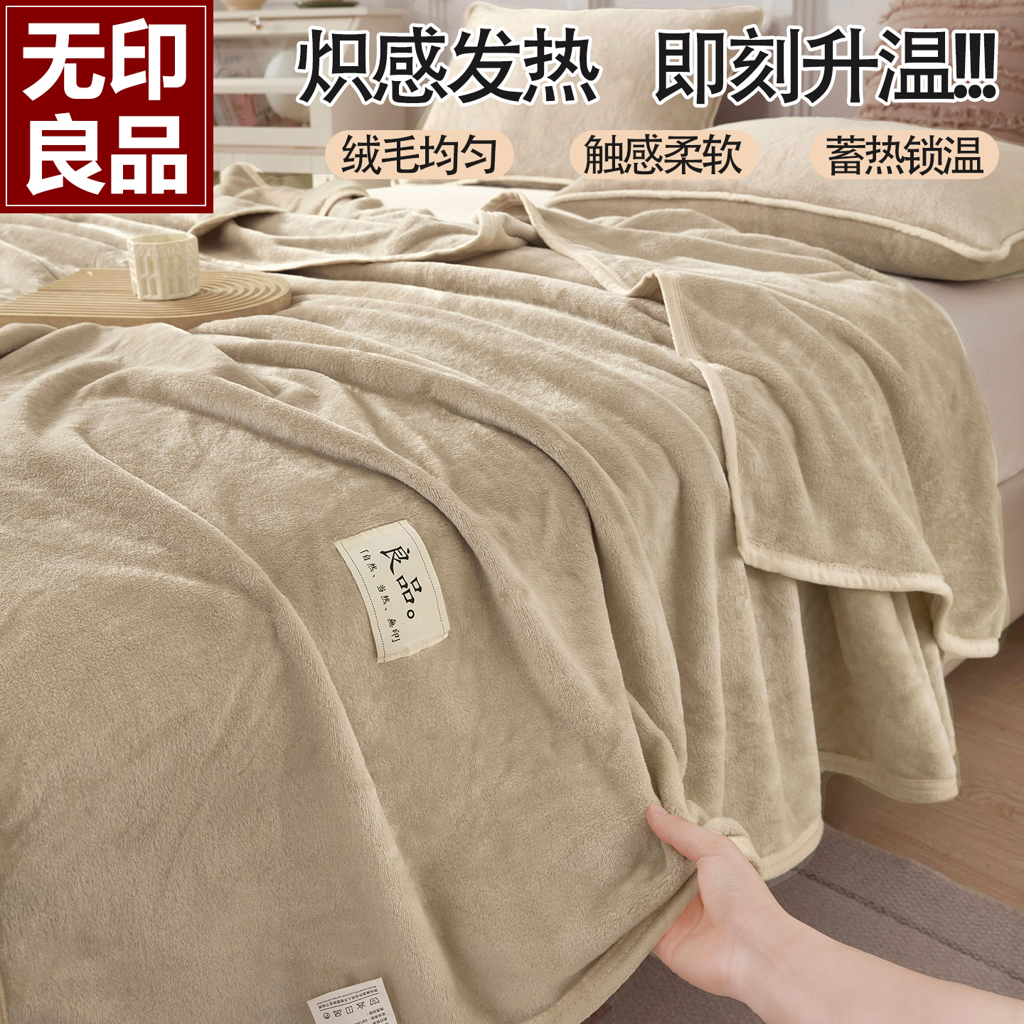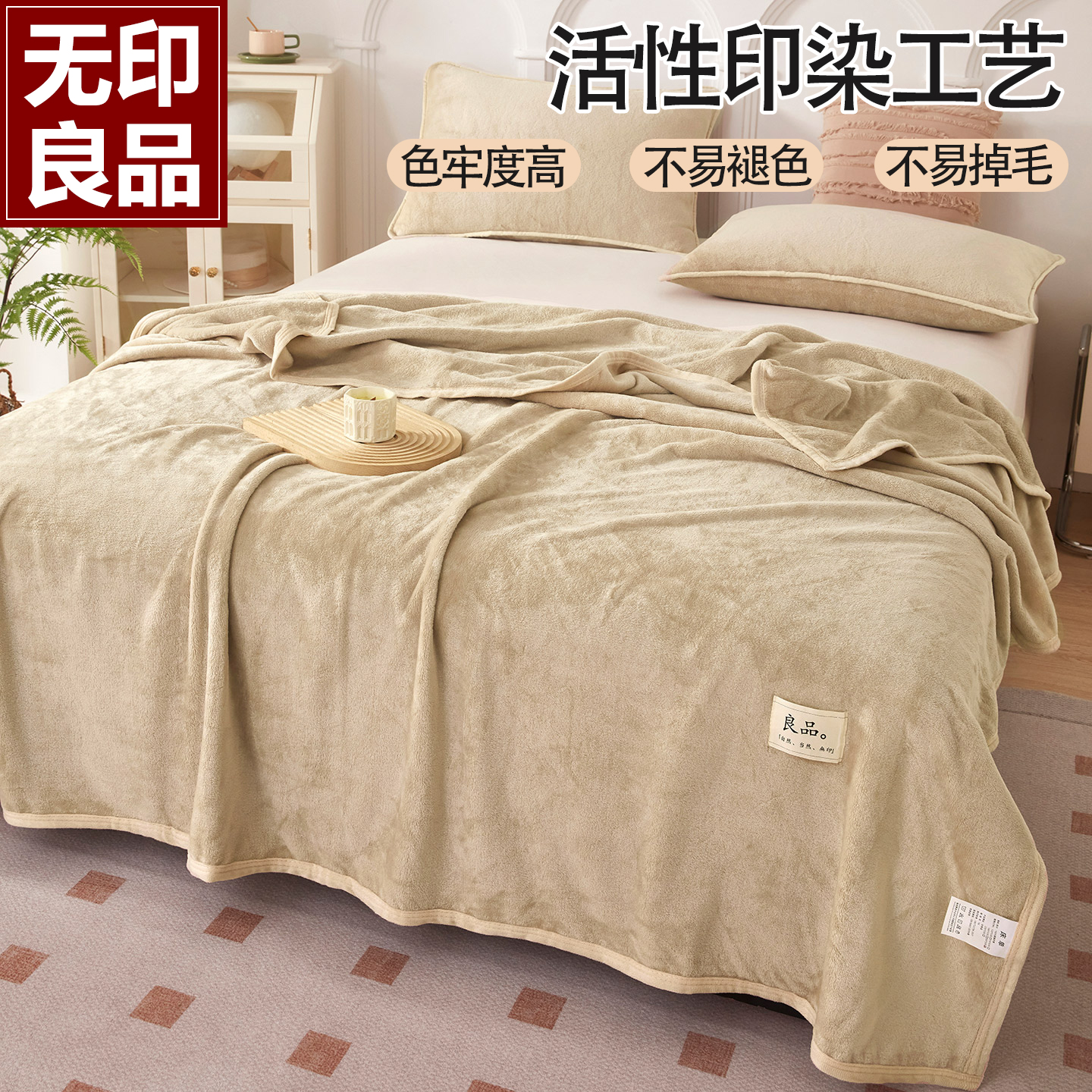 无印良品双面绒床单单件冬季加厚加绒毛毯铺床纯色牛奶绒毯子床罩