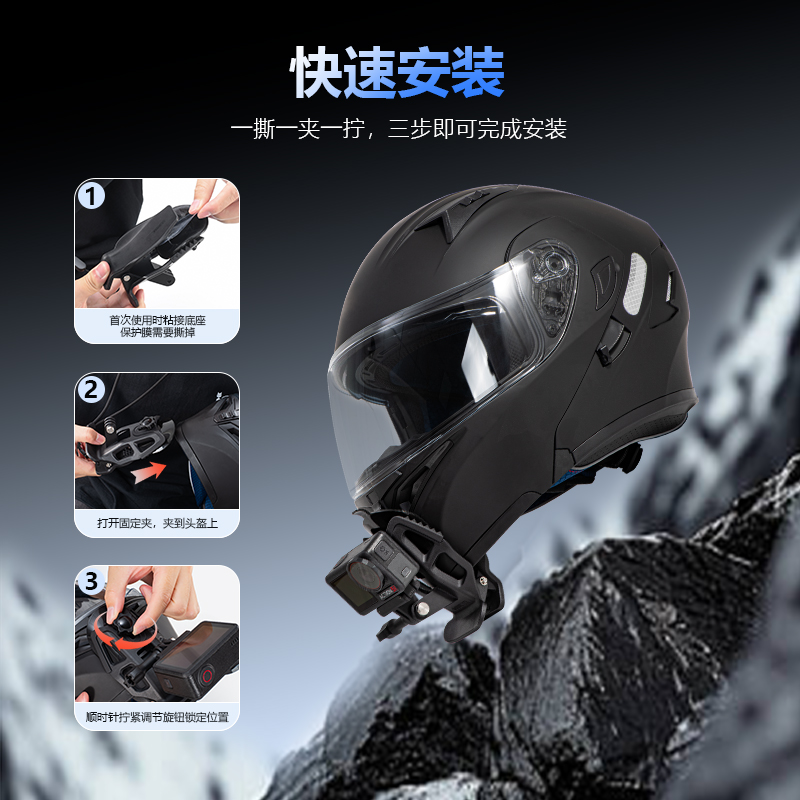 斯达飞适用于大疆action5pro/4/3运动相机摩托车头盔DJIpocket3/2配件固定器底座支架骑行全盔装备,广东 深圳