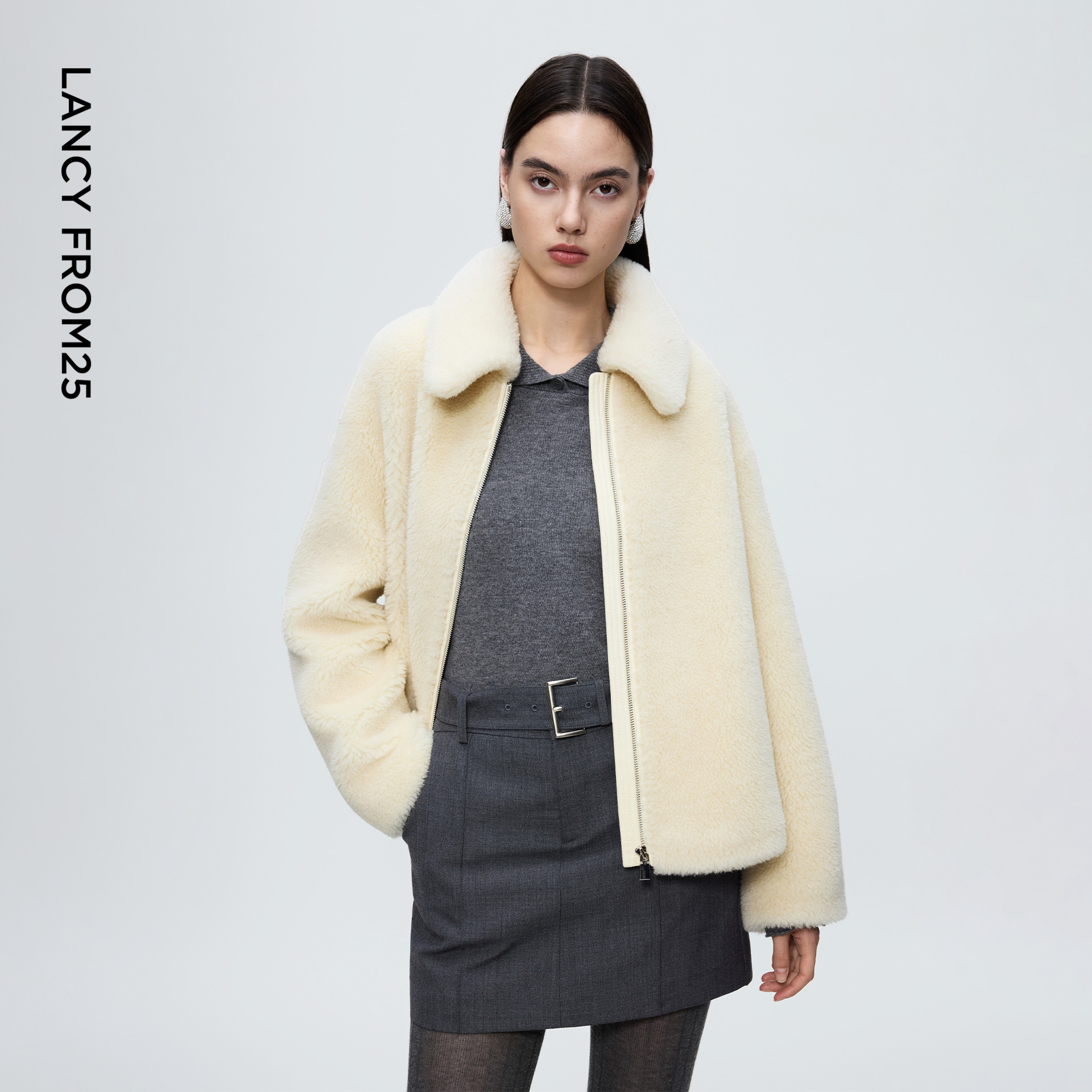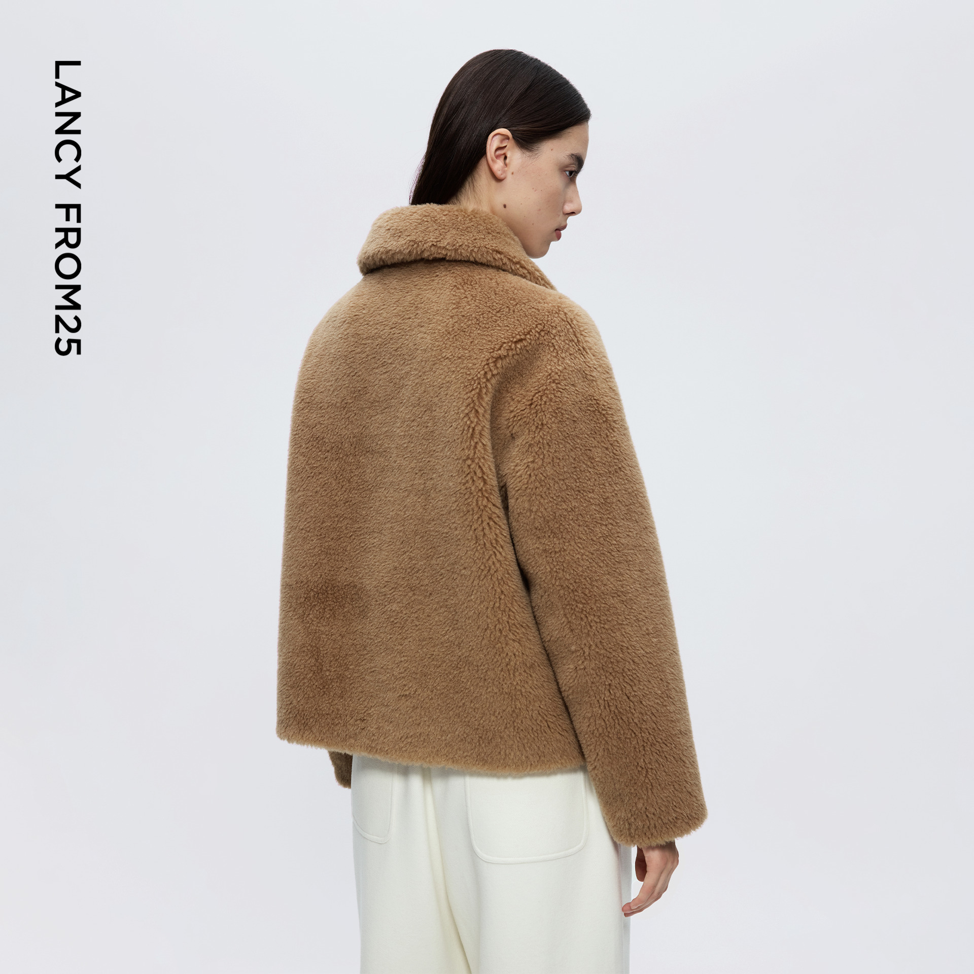 朗姿羊毛翻领气质仿皮草外套时尚通勤夹克上衣女2025年冬季新款,北京