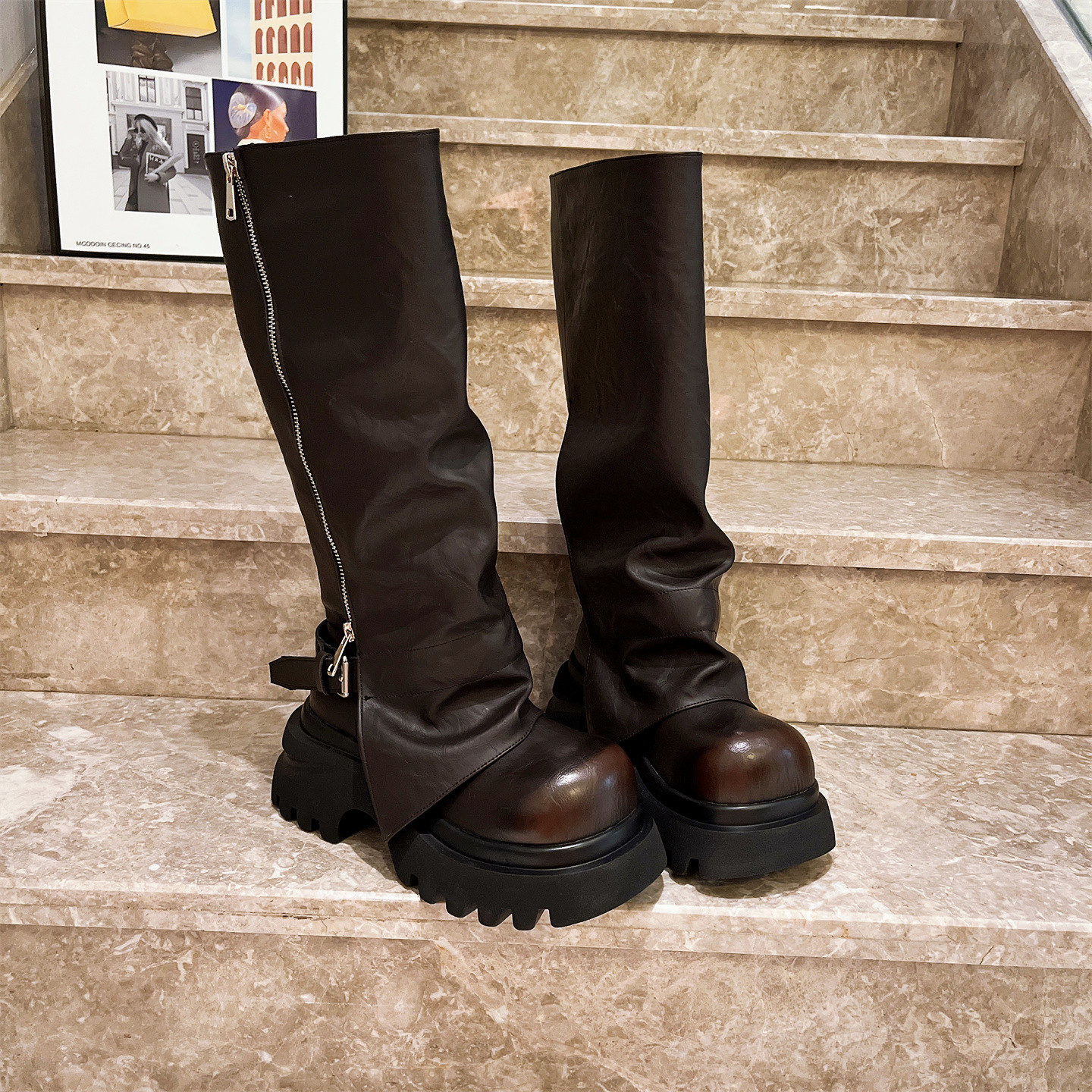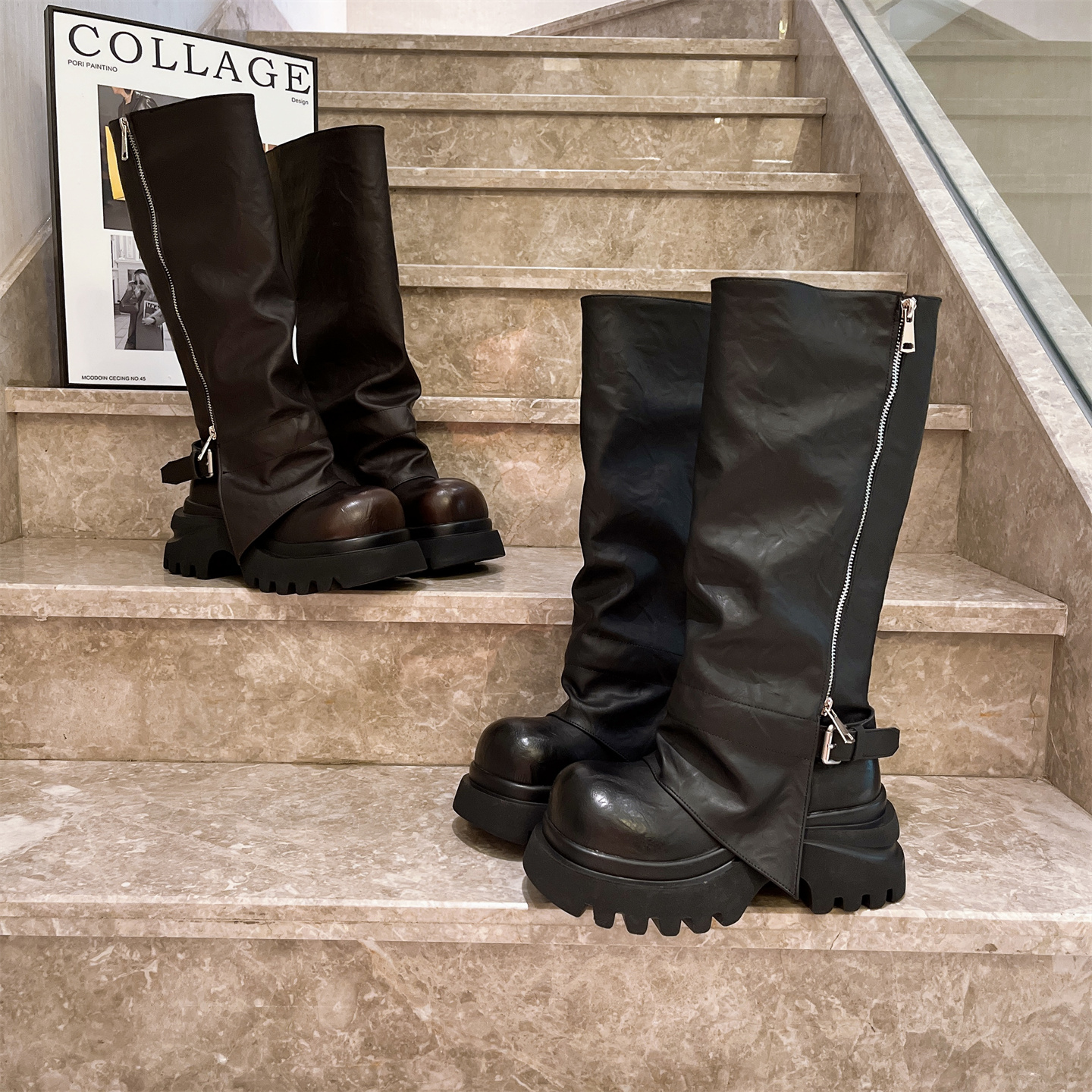 2025新款真皮大头拉链辣妹裤管靴厚底松糕长筒靴马丁靴机车靴女鞋