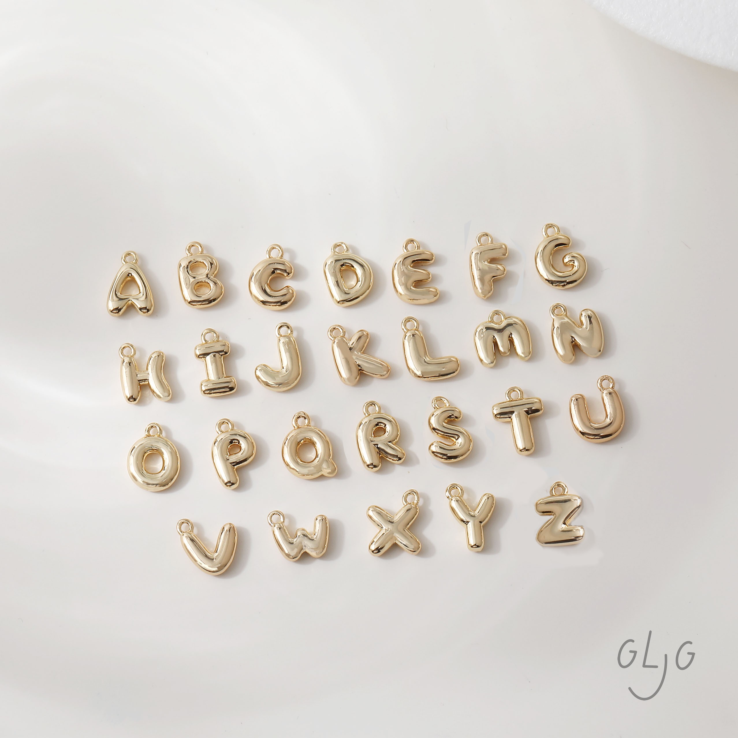 14K电镀真金迷你立体光面26字母吊坠diy项链手链耳饰材料配件,浙江 金华