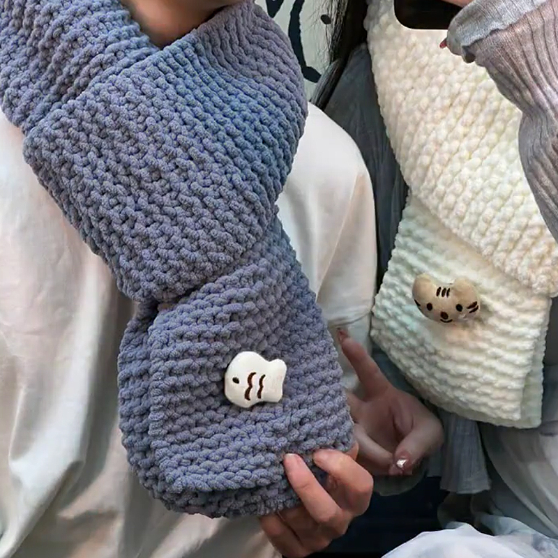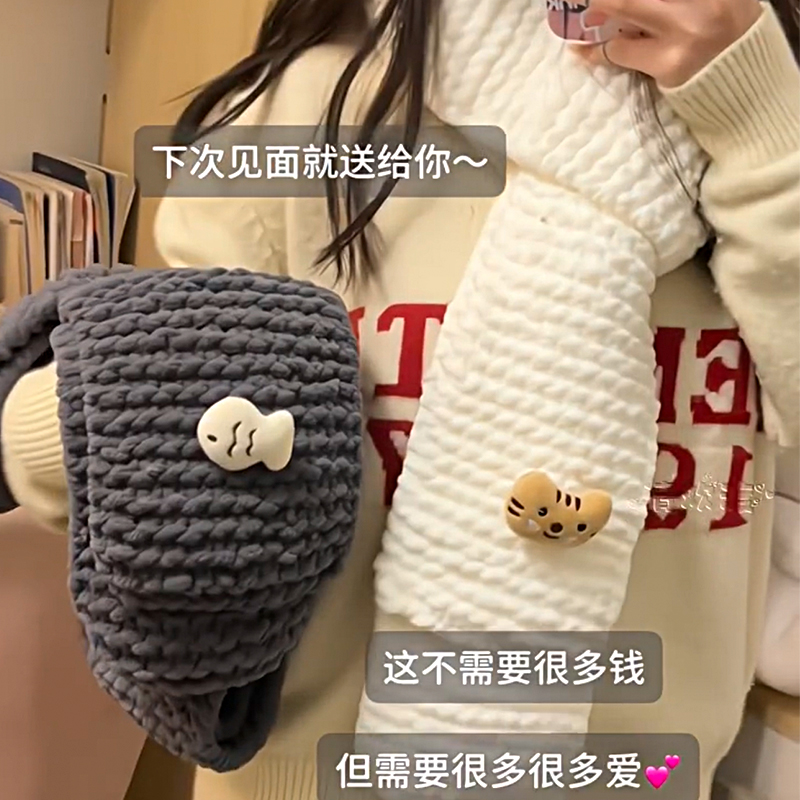小鱼小猫围巾编织材料包自织围巾手工diy粗毛线送女友礼物冰条,河北 保定