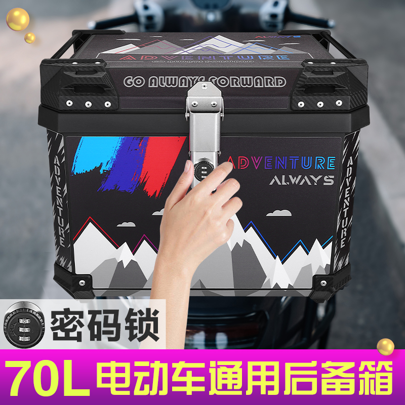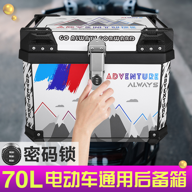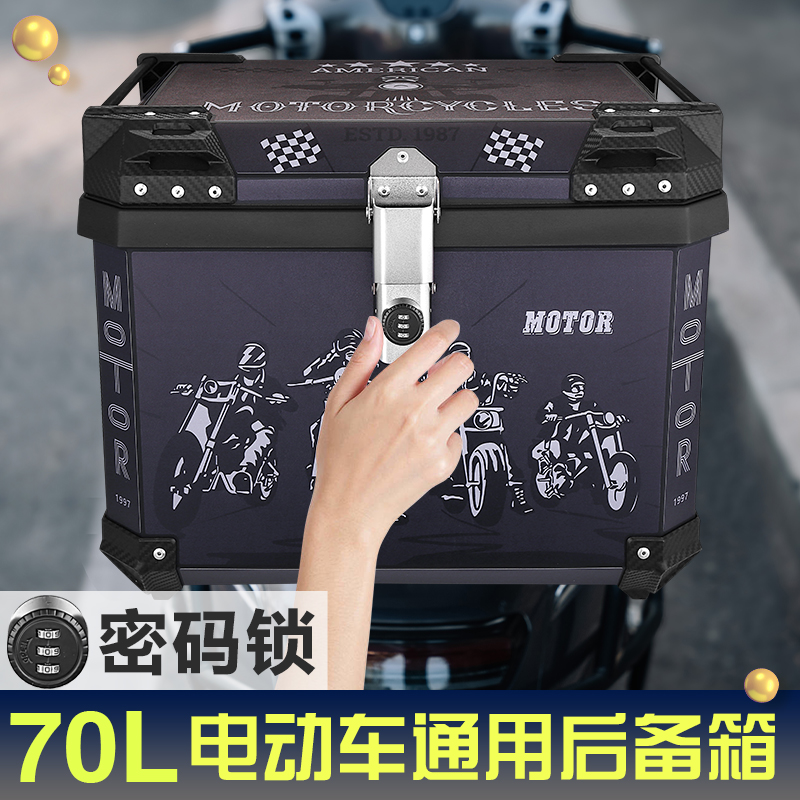 70L密码锁电瓶车大号后尾箱通用大容量摩托骑手外卖后备箱保温胆