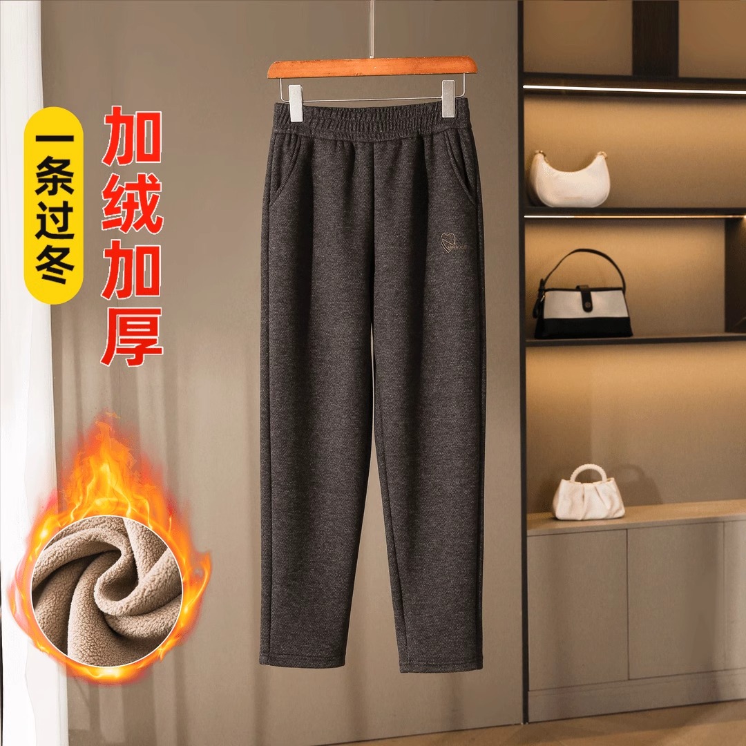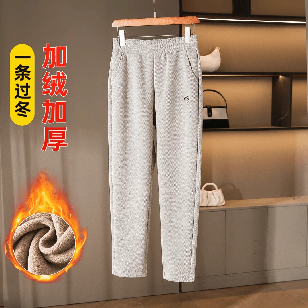 中老年女装妈妈裤子加绒加厚秋冬新款时尚洋气宽松休闲直筒毛呢裤,浙江 杭州