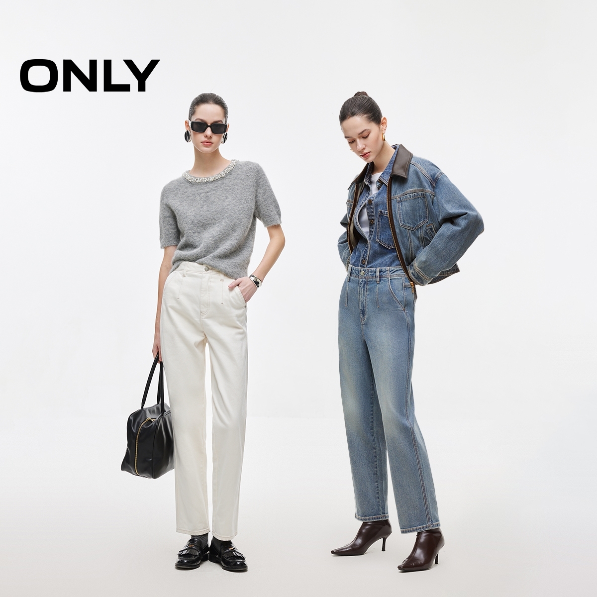 【小白裤】ONLY奥莱2025秋季新款休闲高腰舒适男友裤九分牛仔裤女,天津