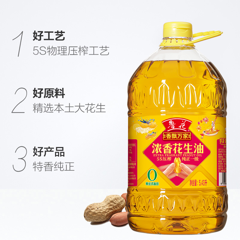 【鲁花直营】鲁花香飘万家花生油6.43L(5.43L+1L)食用油粮油,山东 烟台