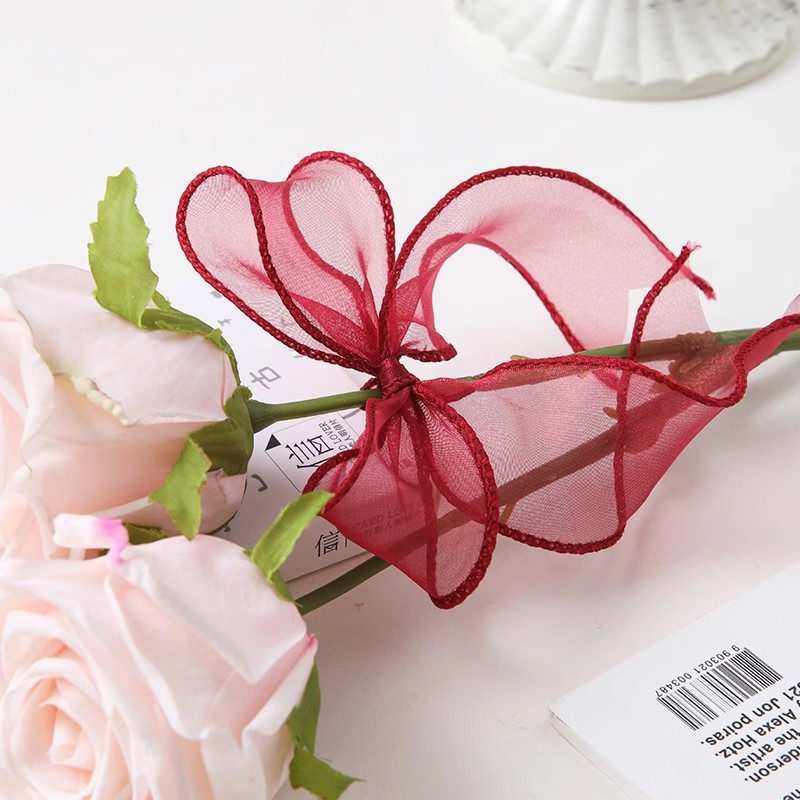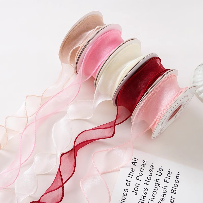 纯色鱼尾纱丝带波浪拷边包花纱花束装饰纱带缎带花店鲜花包装材料,浙江 金华