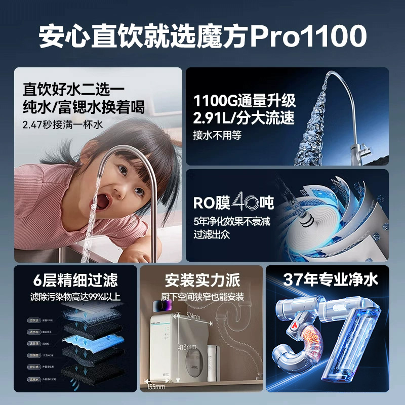 政府补贴安吉尔净水器家用直饮厨房RO反渗透净饮水机魔方Pro2900