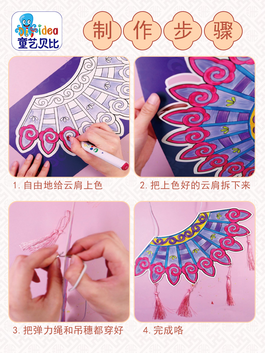 母亲节国中国风云肩幼儿园儿童diy手工材料包绘画涂色益智玩具,广东 佛山